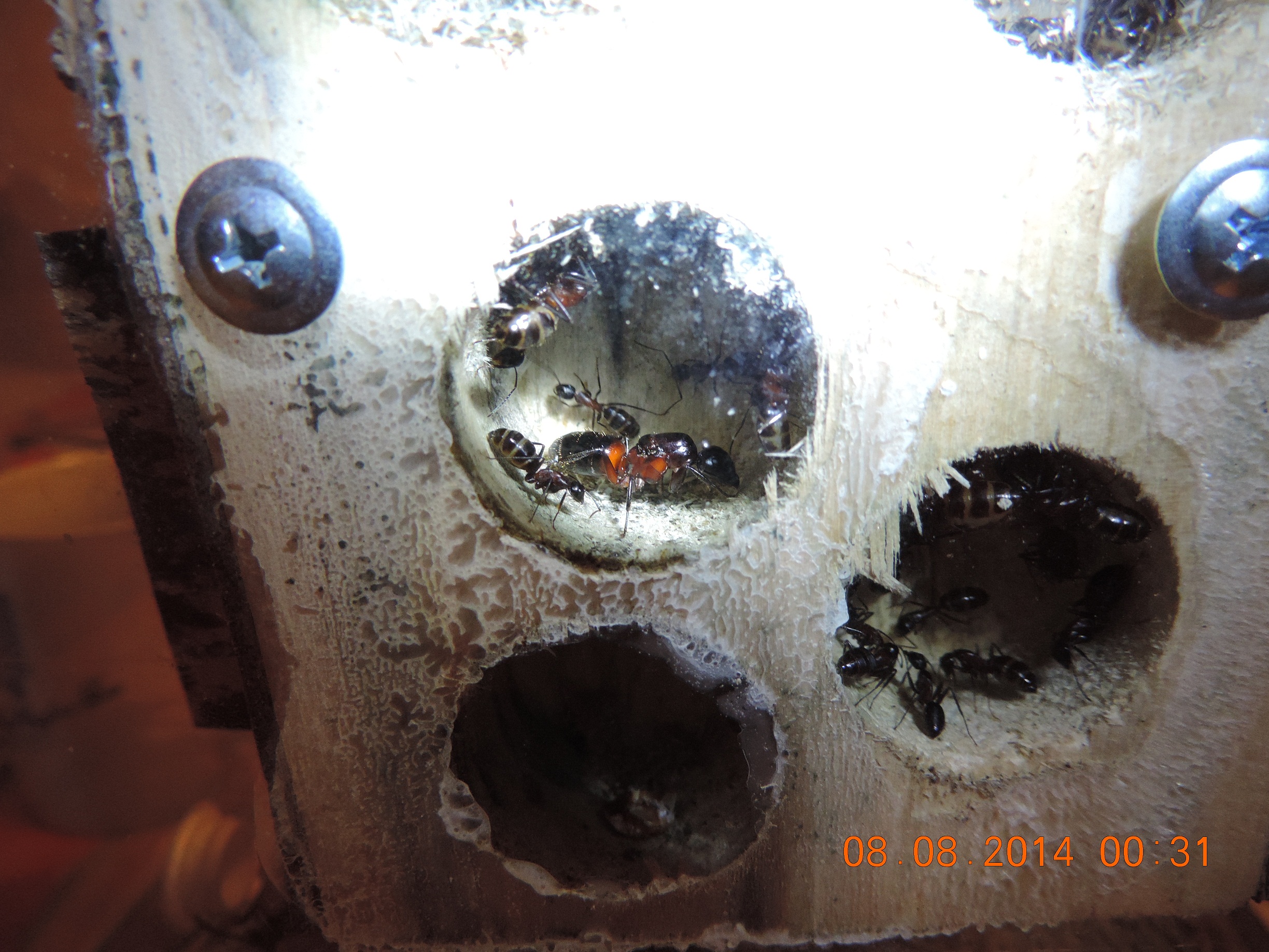 ciao! winny88 correttamente scritto.intonaco ora asciutta.non idratare.famiglia di formiche piccole e hanno abbastanza acqua in bottiglia d'acqua.quando la famiglia aumenta e si trasferirà in gesso piccole,poi mi idratare gesso.se un piccolo ramo più in basso cominci a marcire,io agirò o farò la guarnizione di plastica.sì-ci vivono Camponotus ligniperda.