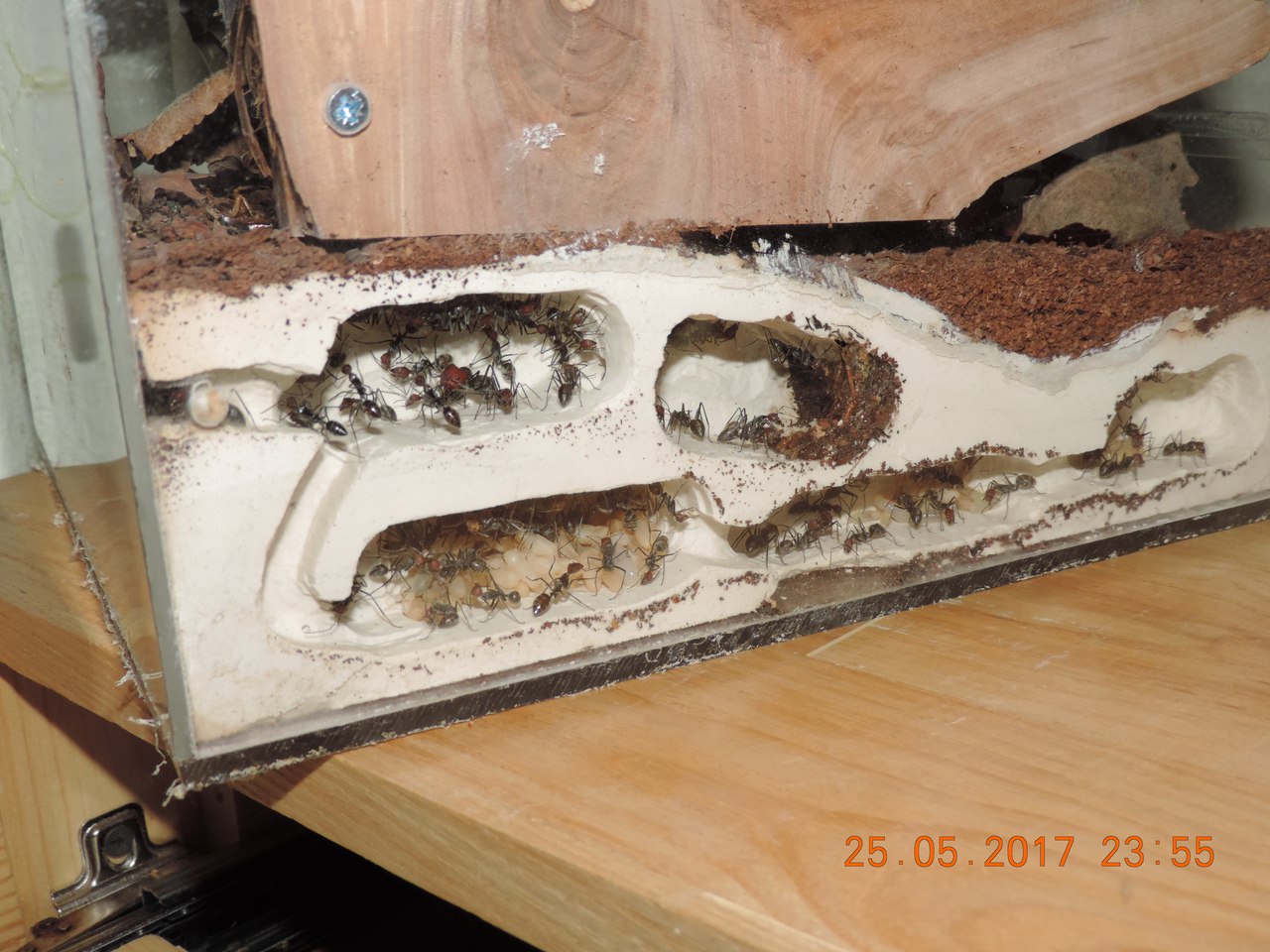 When my colony of Camponotus sp. will be ready, i'm gonna build one of those ''antquarium'' using a carved wood section instead of gypsum for the nest.