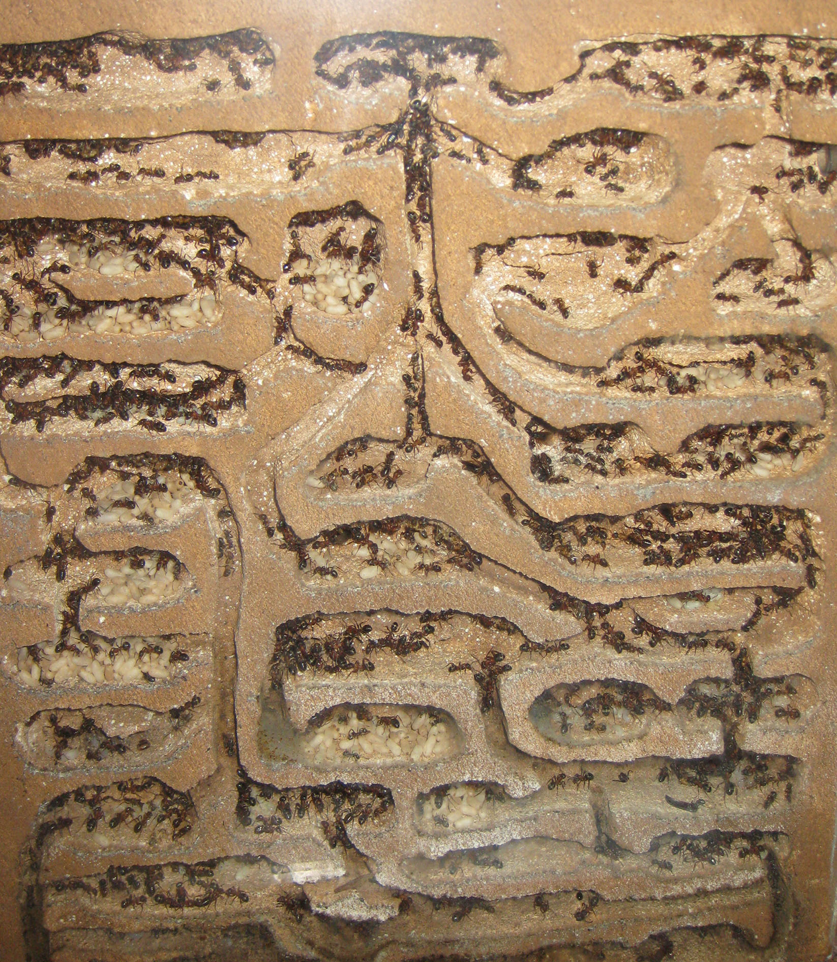 Formicaio in gesso e cemento per Myrmica rubra, in esposizione presso la mostra "Il mondo delle formiche" all'Oasi WWF "la Francesa" di Carpi (MO):