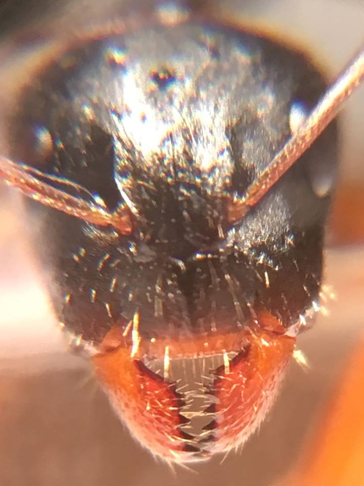 Faccio notare un interessante carattere delle regine che è assente nelle operaie: le mandibole e il margine anteriore del clipeo vistosamente arancioni, con solo il margine masticatorio nero. Le operaie hanno invece le mandibole scure.