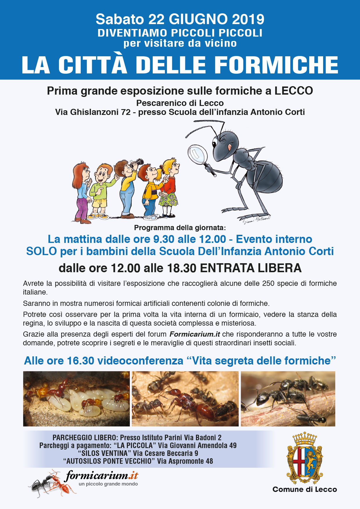 Per tutti coloro che gravitano nel nord-Italia, il 22 giugno prossimo si terrà a Lecco una giornata interamente dedicata alle formiche.