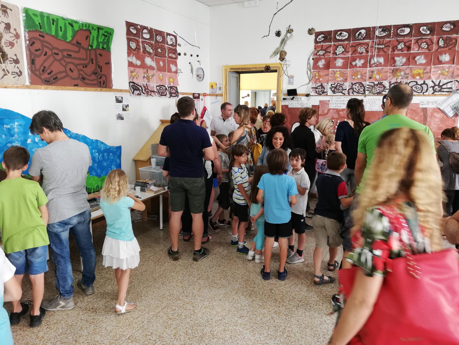 La mattina è stata dedicata interamente alle classi della materna, che si sono alternate (per fortuna) con tutte le famiglie a seguito, quindi almeno trecento persone che hanno riempito le sale dove avevamo allestito la mostra.
