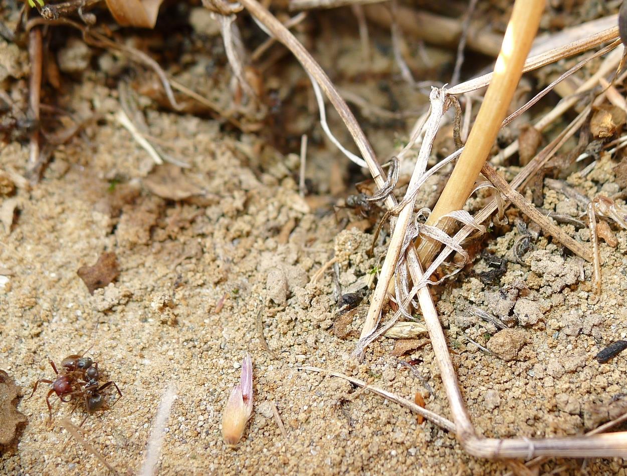 valle rispetto a quello delle Polyergus, ho visto passare una “rossa” che tornava spedita verso casa: