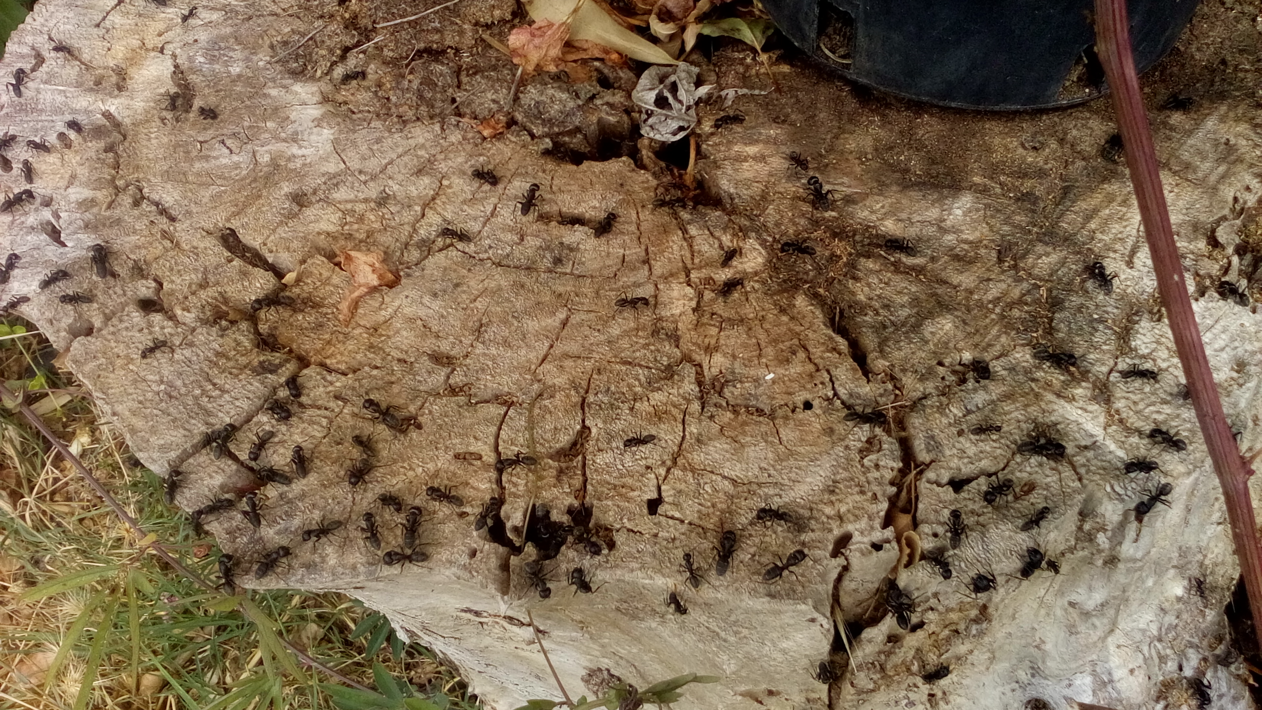 Sta di fatto che sono 3 o 4 giorni (non mi ricordo se le ho notate prima o dopo che ha piovuto)che se ne stanno ferme fuori dal nido (a me sembrano inattive), o meglio sono ferme sopra a un mezzo ceppo di pioppo (l'altra metá è viva) che potrebbe essere il loro nido. Ce ne sono molte anche in terra ferme a una distanza massima di un metro dal ceppo in una strisciata non più larga di 15cm; di queste buona parte se ne sta su una pietra serena (interrata, fa parte di un vialetto). Tra l'altro i cadaveri di quelle che vengono pestate (è un po' difficile spiegare ai cani che non si pestano le formiche...) non vengono spostati.