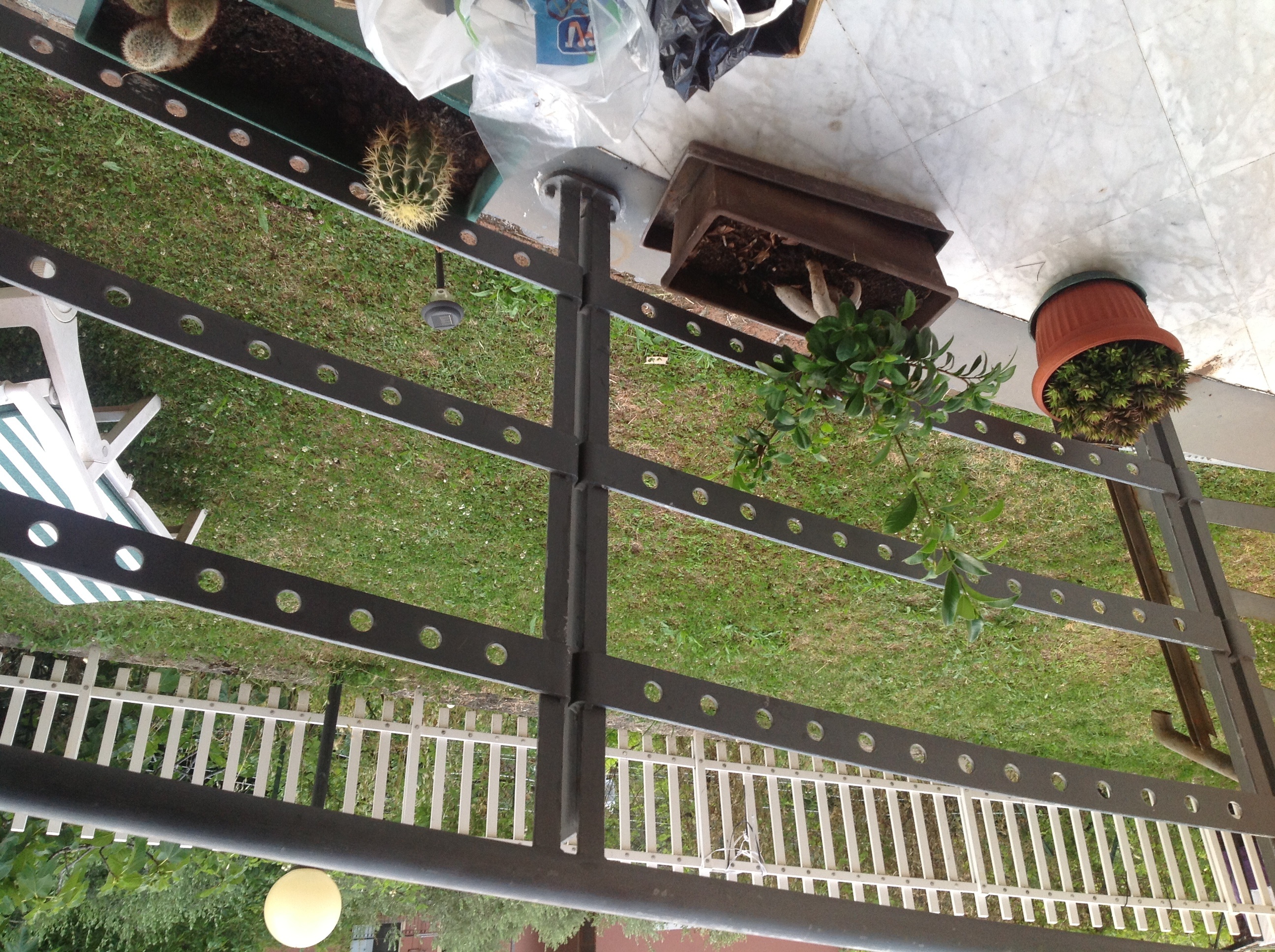 Un entrata( foro nel terreno) sta all'inizio della scala sulla sinistra, poi c'è un uscita ( più che un uscita le formiche escono a ridosso del marciapiedino) a metà tra la scala e la sdraio, infine vi è un' altra uscita(foro) di fronte alla sdraio.
