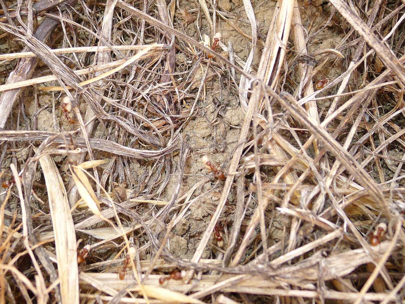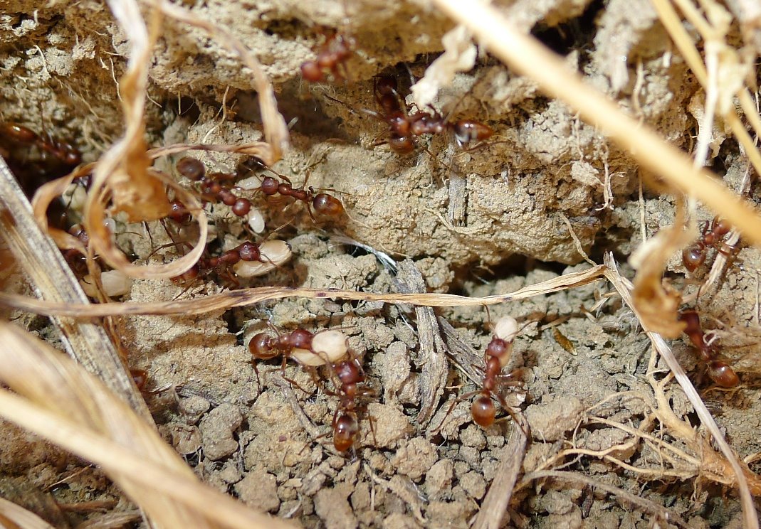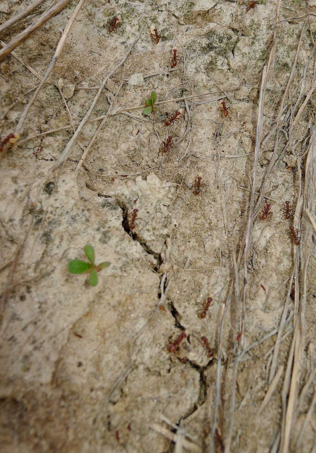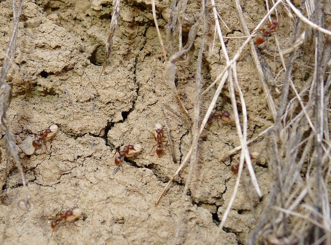Mentre percorrevo il fondo di un canaletto irriguo in asciutta, mi sono imbattuto in una fila di formiche che si muovevano assai velocemente, portando, per lo più, pupe fra le mandibole.
