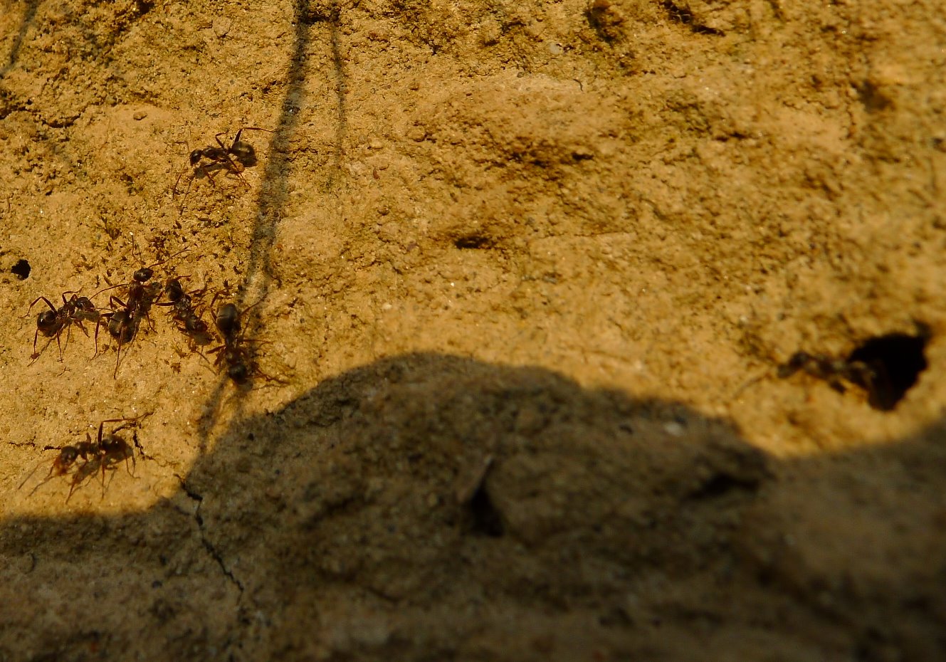 Lungo le rive ho trovato molte formiche nere sparse, ed in alcuni punti alcuni loro formicai