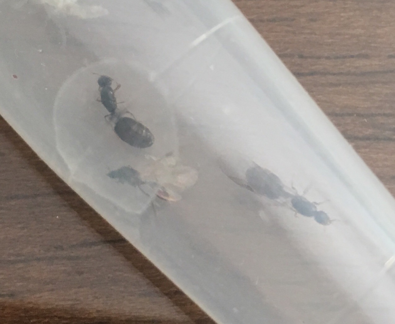 10 minuti fa ho prelevato due regine appena uscite da un formicaio di Solenopsis fugax e in procinto di sciamare, una era già fuori a sciamatura in corso quindi potrebbe già essere stata fecondata e una invece sicuramente no perché L ho vista uscire...poi ho prelevato 4 o 5 maschi da un altro nido sempre qui vicino casa e li ho messi tutti insieme in provetta...bene dopo nemmeno 5 minuti che erano dentro le regine si sono dealate ed hanno cominciato a strofinarsi con la bocca sull’estremità de gastro, tutte e due quasi contemporaneamente tanto che in una frazione di secondo mi sono perso chi era una e chi l’altra!