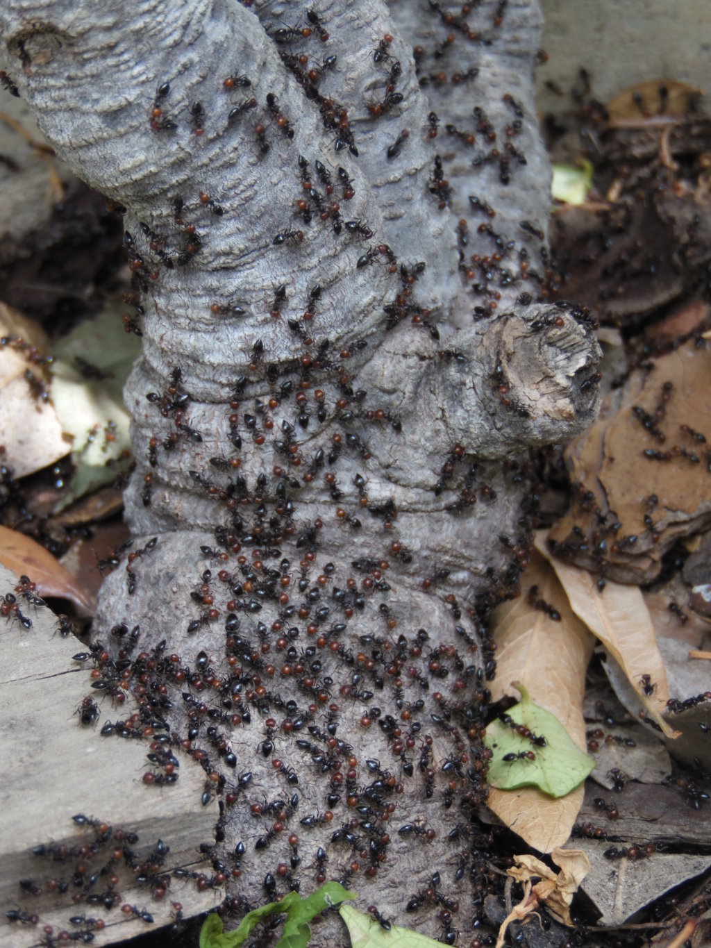 dopo una nottata di pioggia ritrovo davanti casa quello che è letteralmente un tappeto di presunte Crematogaster scutellaris. E' ovvio che nei paraggi sono nascosti numerosi formicai, ma questa "uscita di massa" la trovo alquanto insolita e curiosa. Queste formiche stanno ferme ormai da ore, alcune si ammasano (non sembra ne combattimento ne grooming) e al minimo disturbo rispondono con qualche attimo di frenesia, per poi tornare alla calma.