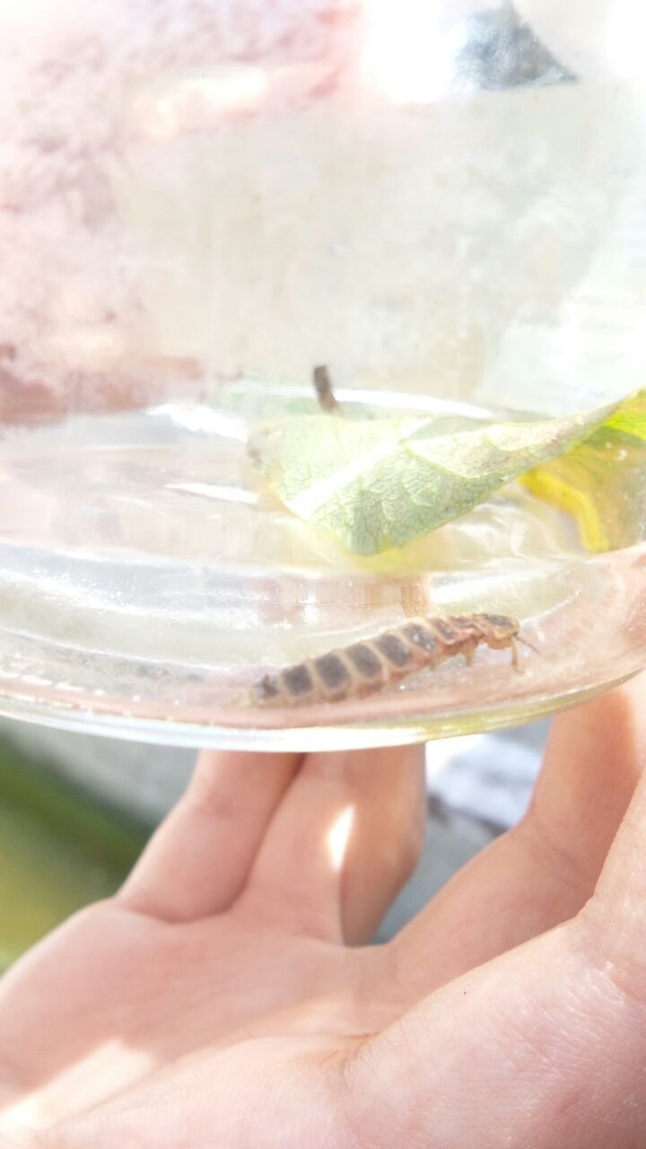 Per adesso è in un barattolo di vetro e appena gli ho messo una foglia verde caduta da un albero bagnata ci è andata sopra e non si è mossa. (Invece prima girava in tondo il barattolo)