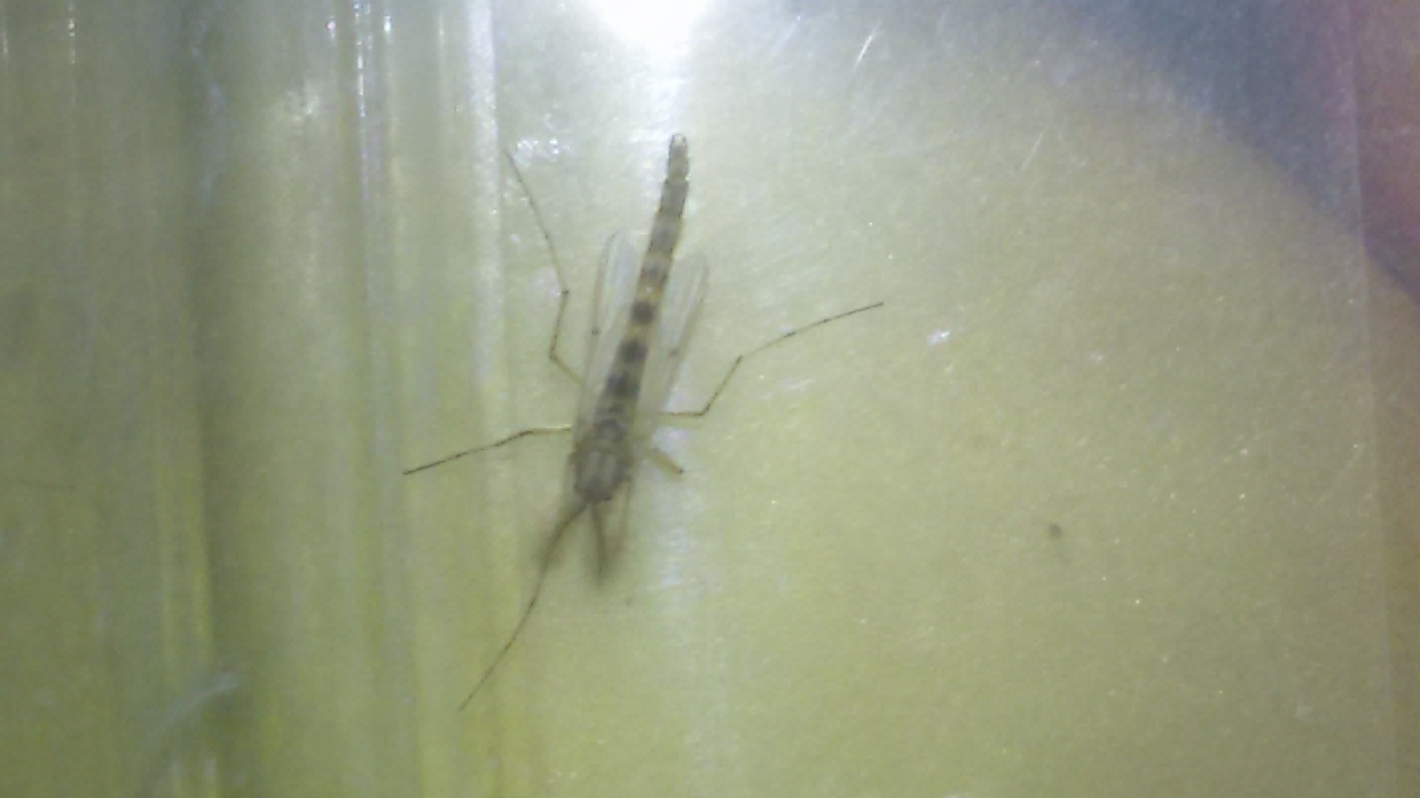 Trovato in giardino che volava. Somiglia ad una.grossa zanzara ma mi hanno colpito le antenne pelose e la colorazione tipica dei sirfidi. Le foto sono pessime, non avevo a disposizione il mio cellulare. Non so la grandezza precisa, è poco più grande di una zanzara, più o meno una grossa vespina.