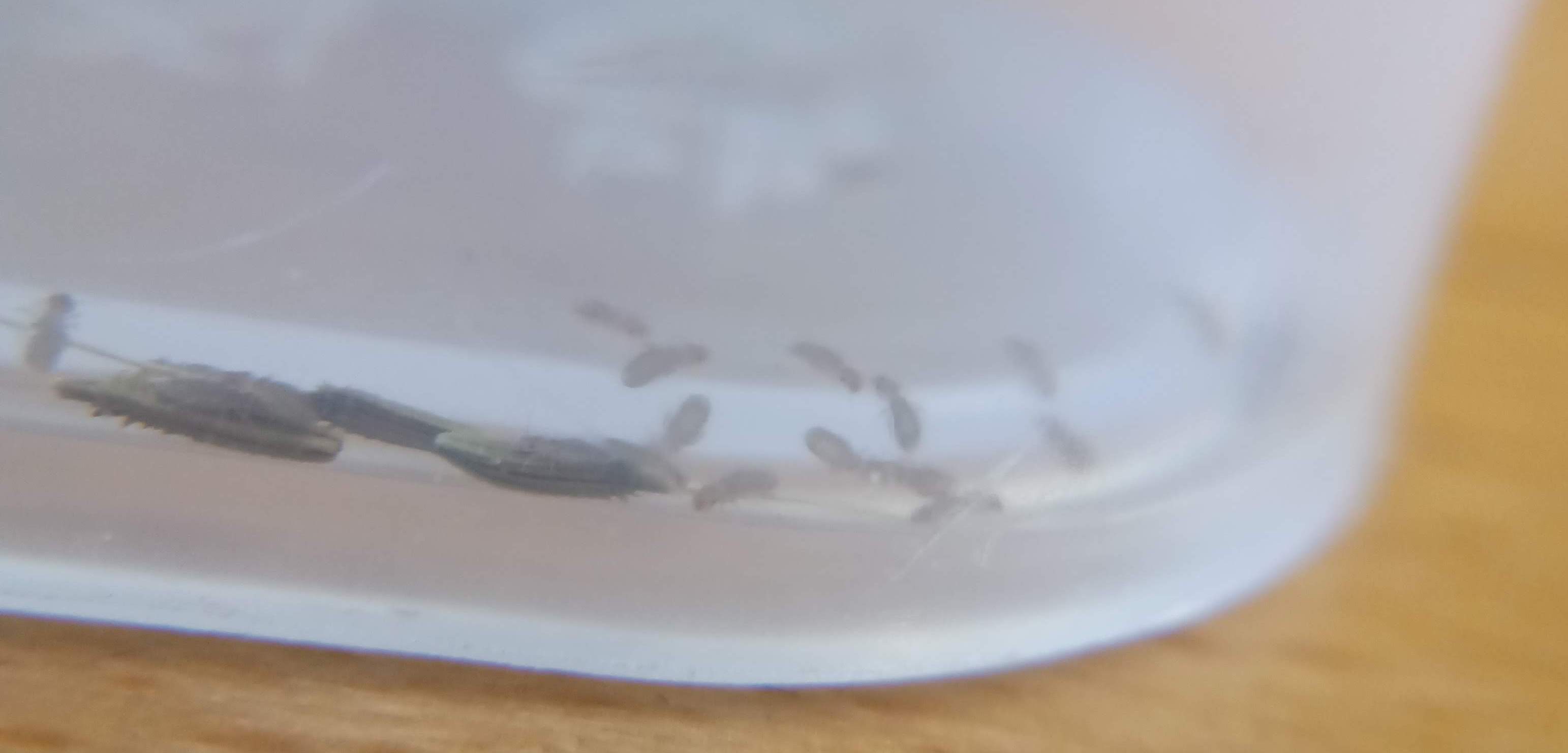dopo qualche settimana ho trovato il recipiente pieno di piccolissimi insetti lunghi al massimo un mm.