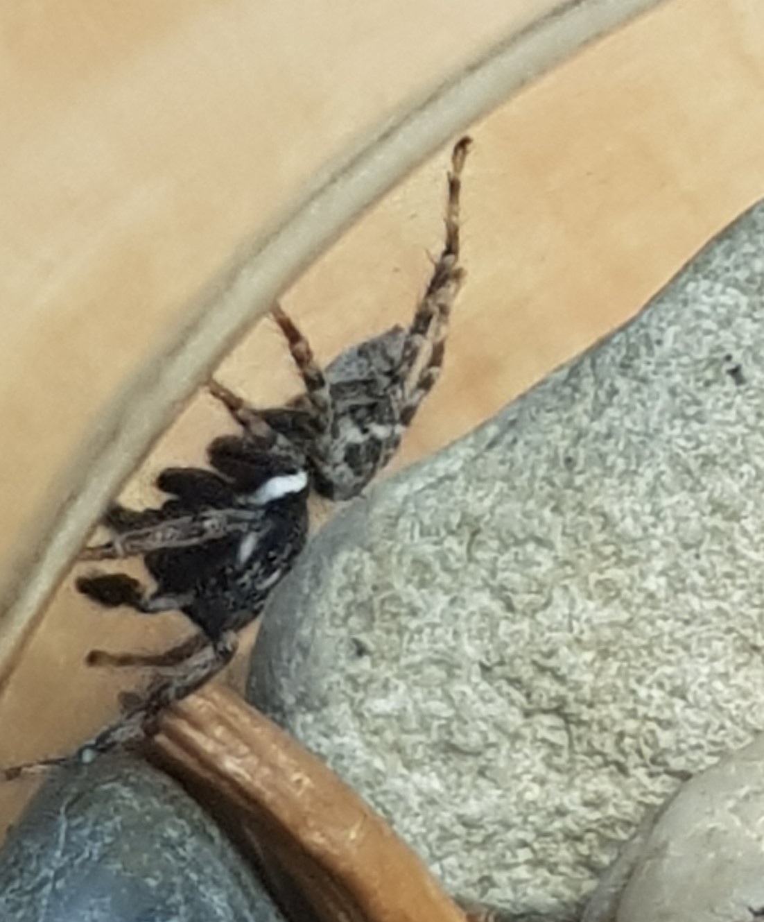 Questo è il primo che ho trovato, all'inizio pensavo fosse un maschio, ma considerato che da qualche giorno ha rinforzato molto la tana e si è nascosto lì dentro senza mai uscire comincio a sospettare sia in realtà una femmina gravida. Osservando foto su internet il genere mi sembra Icius, ma a parte la livrea non saprei davvero quali caratteri guardare.
