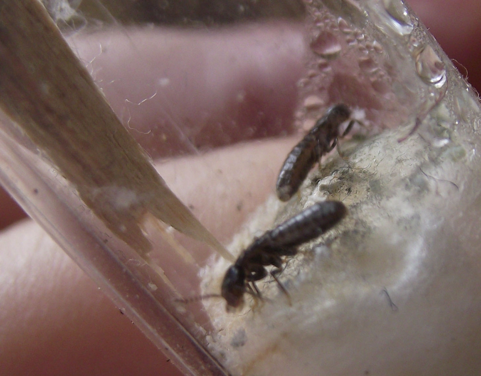 Le mie stanno in provette pulite solo con un pezzetto di legno, ma non lo toccano, stanno sul cotone umido, nemmeno si avvicinano al legno, le due coppie sono vive, il terzo invece è morto due giorni dopo la raccolta, non era un trio, ma una coppia e lui è morto subito.