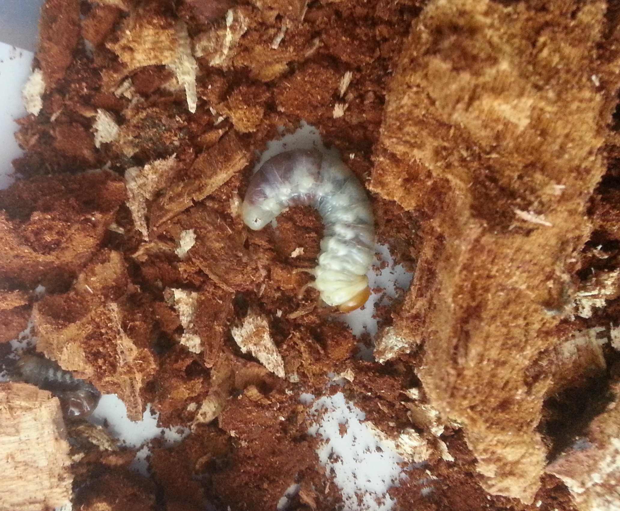 Questa mattina rompendo un ceppo di legno marcio ho trovato parecchie larve, alcune delle quali davvero grosse (la più grande era lunga 30mm).