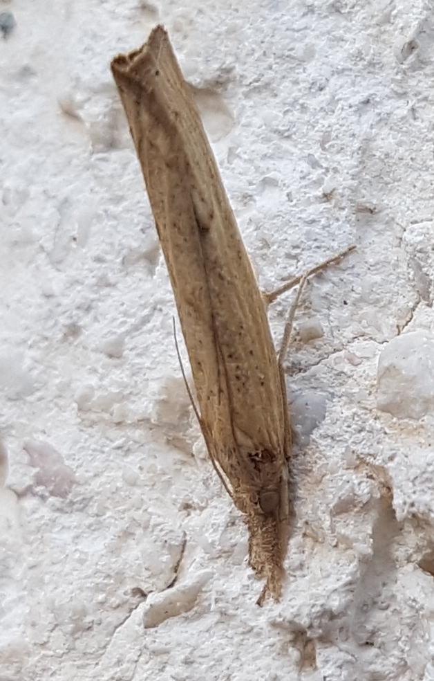 Per caso sapete cosa sia questa simpatica farfallina (da me comunemente chiamato "barbellino" come ogni altra falena) che da 2 giorni si finge un rametto (con scarsi risultati... :lol: ma non sarò di certo io a dirglielo) sul muro di casa mia?