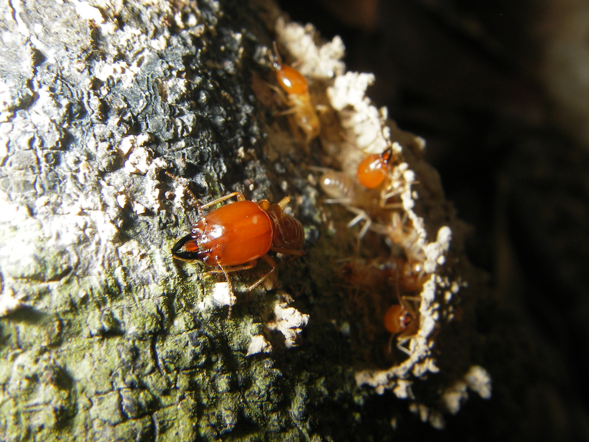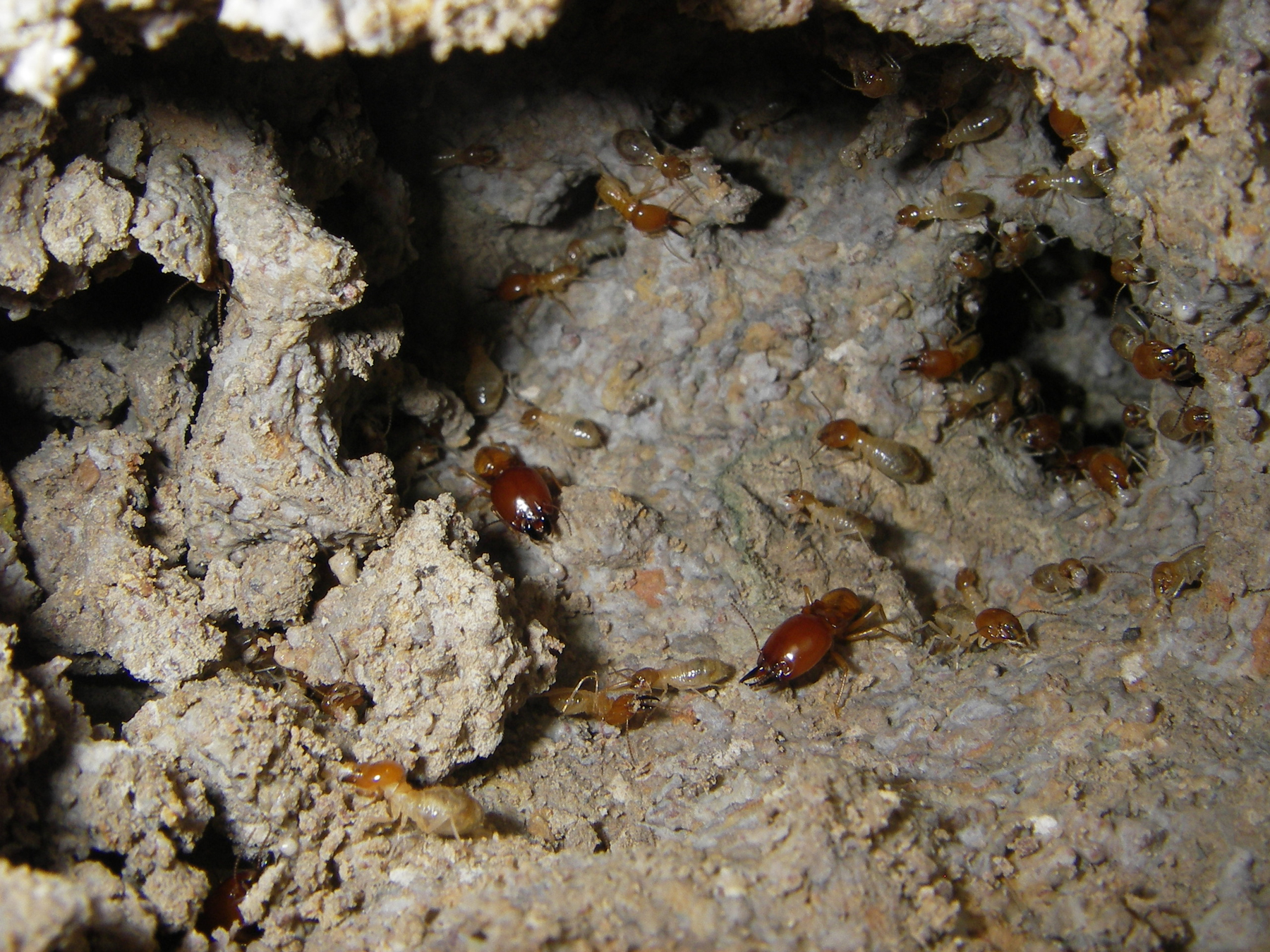 Ma queste proprio come formiche foraggiavano in colonne, piste lunghe vari metri, e protette da soldati. che io sappia solo alcune nasutitermes (termiti i cui soldati invece delle tenaglie hanno come arma una sorta di protuberanza sul capo sclerificato, a mo' di cannoncino che secerne sostanze repellenti e o appiccicose), e le Macrotermes, considerate le piu evolute, nidi popolosissimi, 2 caste di soldati, e coltivazione di funghi(termitomices)