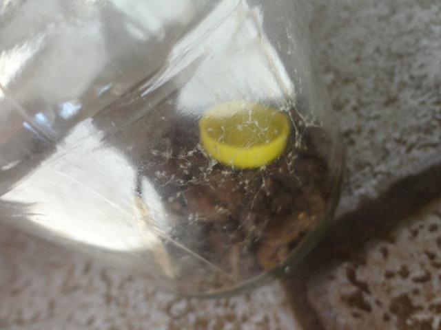 .Ho notato che aveva fatto la tela nel barattolo in cui la avevo momentaneamente messa,a volte la tela presentava dei pallini,non è che sono uova no??Generalmente non fanno l'ovisacco o ci sono altri metodi che usano per deporre le uova?In ogni caso la ho messa su una traversa di legno a pochi metri dal luogo in cui la trovai,qui troverà cibo a volontà e spero che starà bene.Le ultime due foto sono della liberazione del ragno mentre le prime tre sono della tela.Grazie ancora a tutti In fondazione: