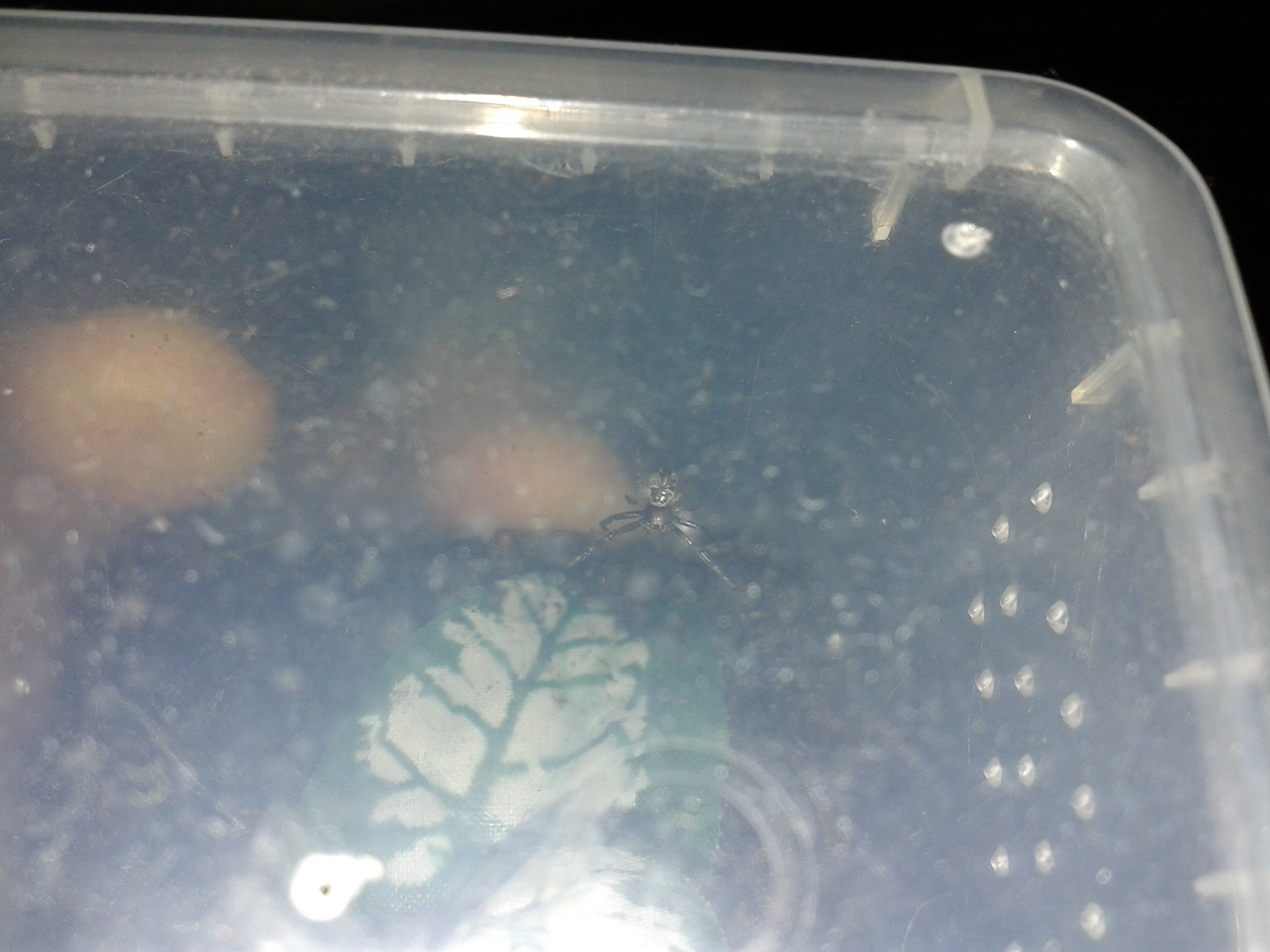 ciao a tutti è da qualche settimana che sto allevando questo ragno grande circa 3-4 mm di corpo circa gli do da mangiare moscerini vari che trovo in casa dalle foto non si capisce molto perche sono fatte col cellulare ed è molto molto piccolo, se può essermi d'aiuto ha le prime due paia di zampe molto sviluppate e piu lunghe e le ultime due sproporzionatamente piu piccole..