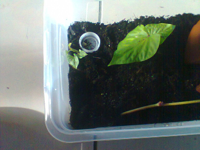 Ecco qui invece il proprietario della coltivazione di patate dolci fatte da talea (ho scoperto che sono adattissime per i terrari ed ho scoperto come si coltivano sempre su amiciinsoliti (Ipomea batatas)):