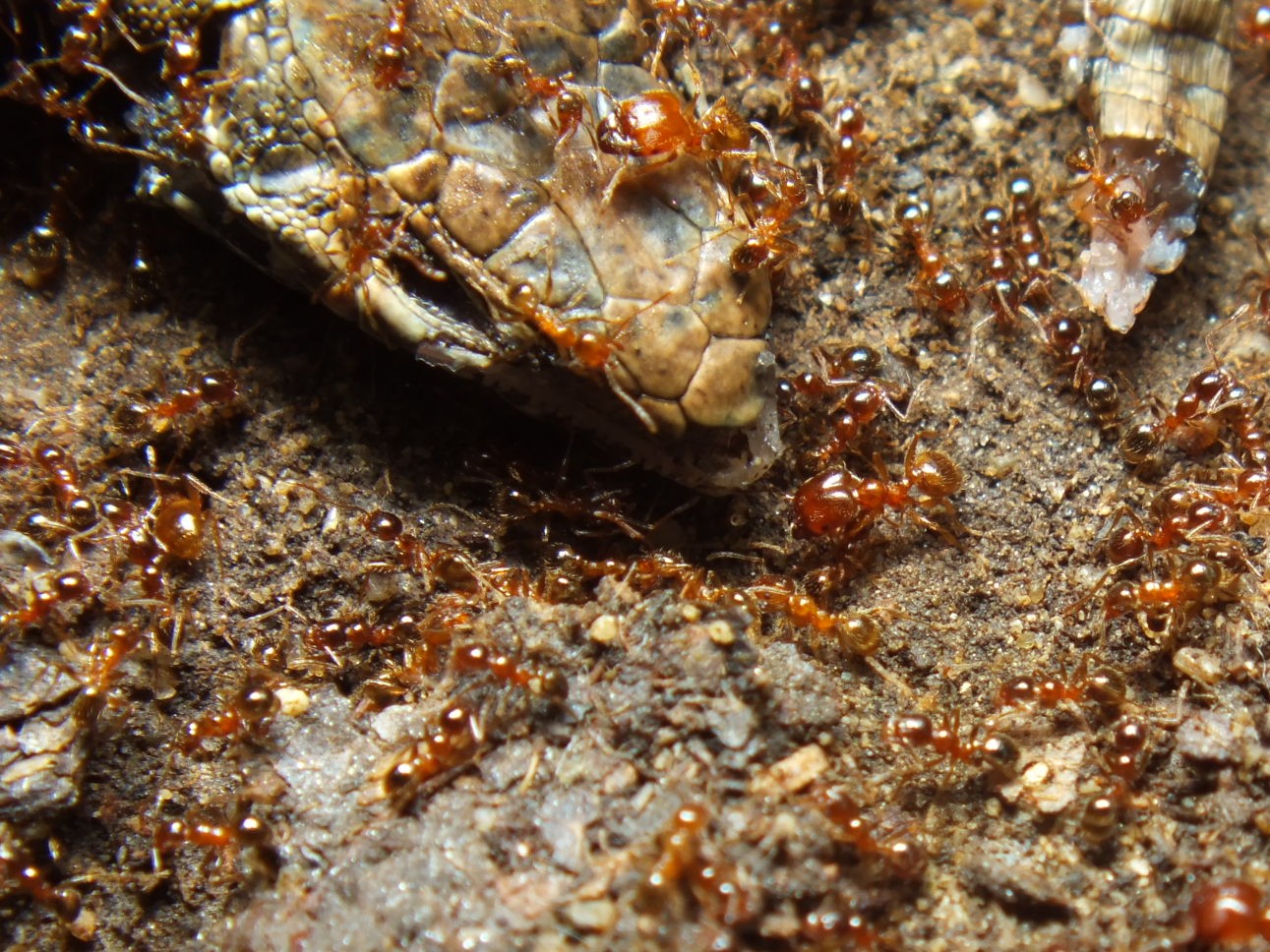 Ho tenuto la fotocamera in fuoco automatico perchè quello manuale è elettronico, nonchè penoso. Per il resto ho messo tutto in manuale: ISO 100 o al massimo 200, f che va da 3.6 a 8, ma ho preferito tenere il diaframma possibilmente aperto pr tenere a fuoco il soggetto e non lo sfondo (le formiche sono piccole e se chiudevo troppo il diaframma l'immagine risultante avrebbe troppi dettagli e l'occhio non saprebbe proprio dove posarsi, almeno ho ragionato così).