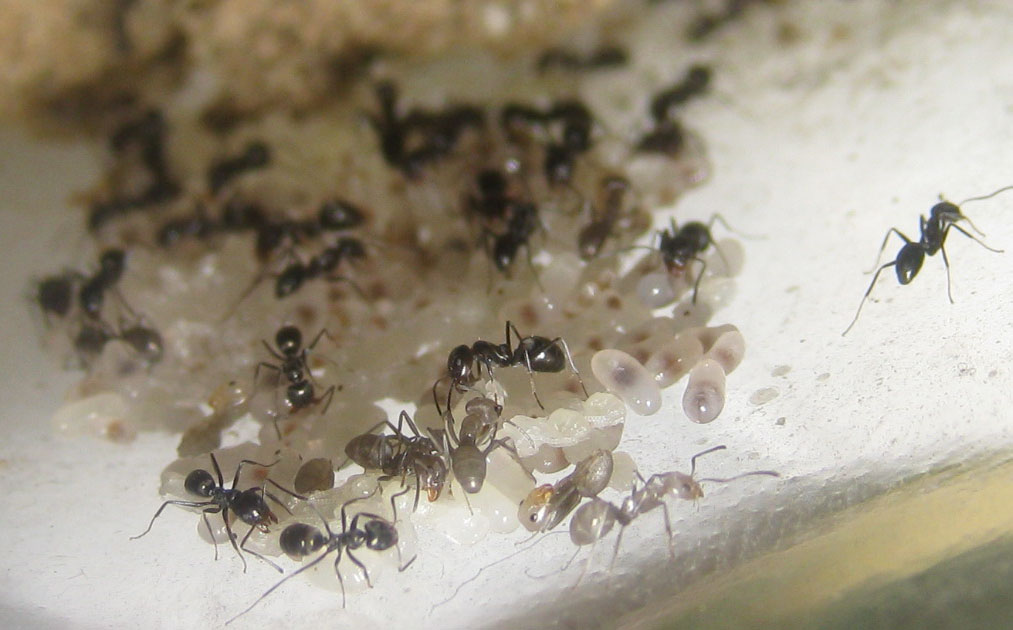 Queste formichette si sono riprodotte nel barattolo angusto a velocità notevole, ed è sempre presente una covata varia e abbondante.