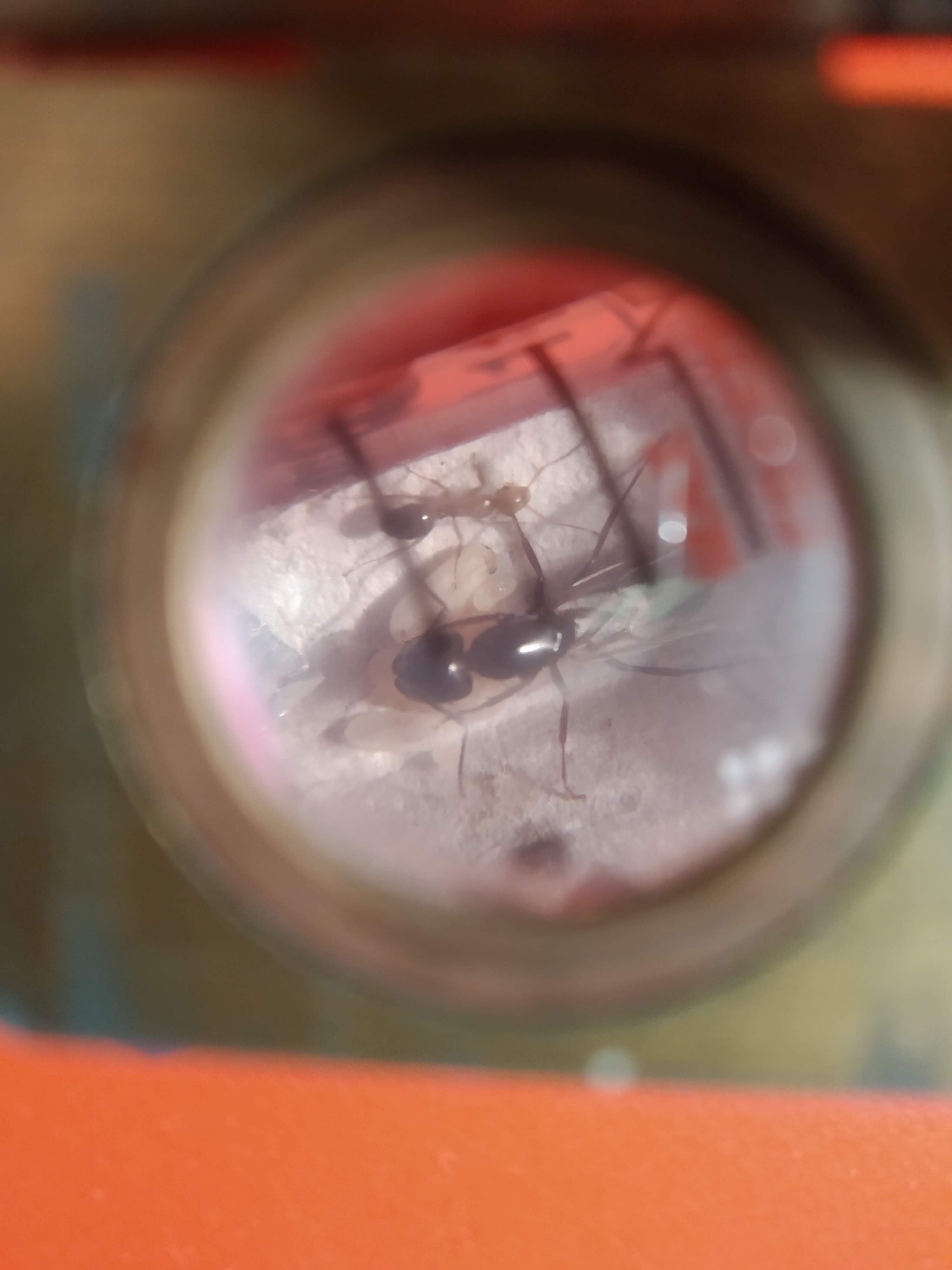Ho dovuto compiere un ulteriore trasloco a causa della muffa creatasi sul cartoncino, per evitare questo ho deciso di preparare la provetta in modo classico. Il metodo del cartoncino funziona bene la fondazione, ma lo sviluppo di muffe è davvero rapido e può diventare letale (ho perso delle regine di Dolichoderus quadripunctatus che avevano già deposto in questo modo, purtroppo). Bisognerebbe trovare un qualche modo per evitare lo sviluppo di muffe sul cartoncino per rendere questo metodo davvero efficace.