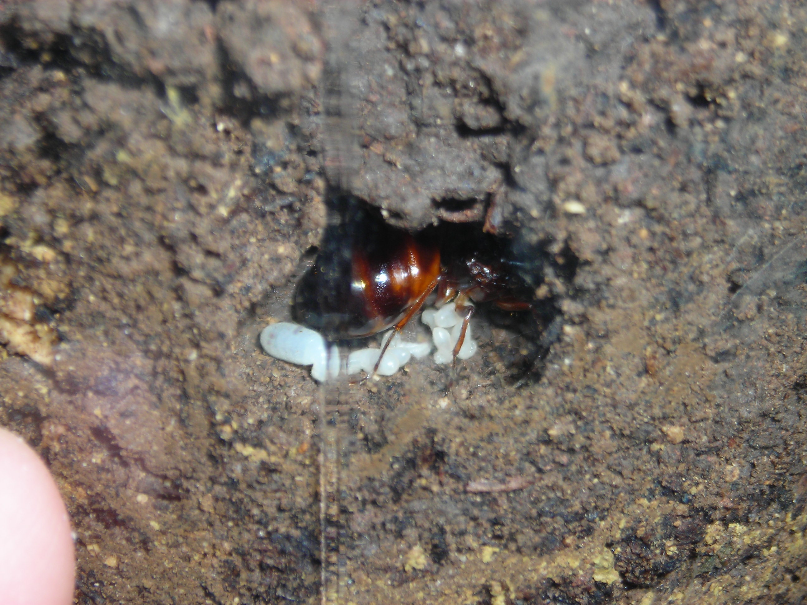 Io nidi nei paraggi non ne ho visti, a meno che è possibile che soto ci sia un nido giá ben sviluppato e quando hanno scavato quelle che a me sembravano larve delle mi regine in realtá erano in una stanza nei piani piú alti del nido. Di tre regine sono sicuro... Ora mi viene un dubbio se è un alato che conseguenze puó dare comunque ci sono piú di 5 larve normali e una quella grande