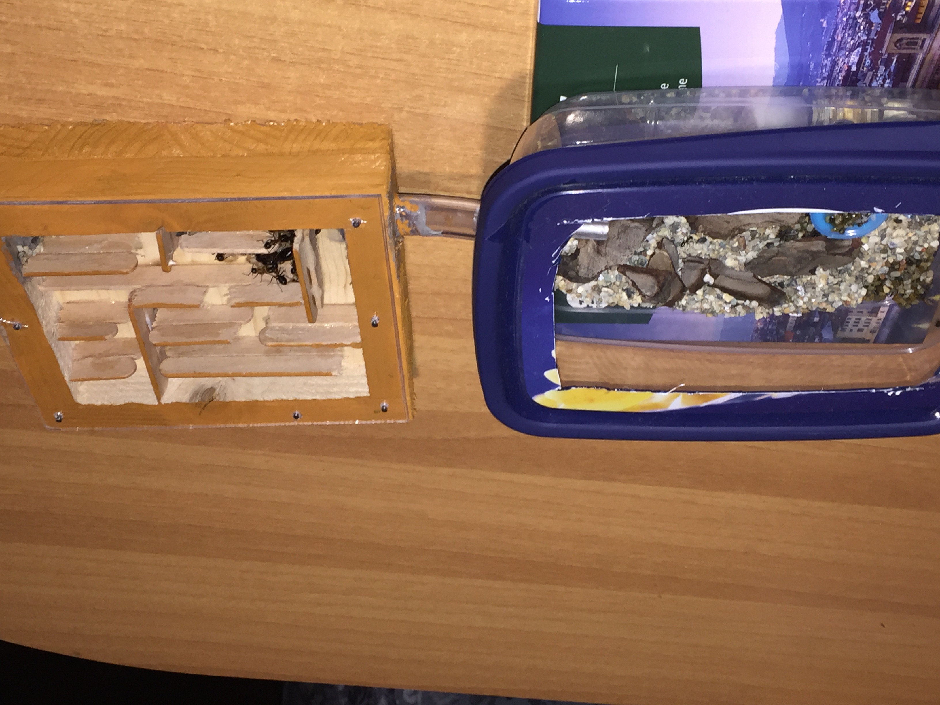 Tra poco trasferirò anche la colonietta alpha, leggermente più indietro (qualche operaia in meno e covata meno numerosa ma con 60-70 uova) in un nido di accrescimento come questo, però vorrei tenerlo direttamente in verticale.