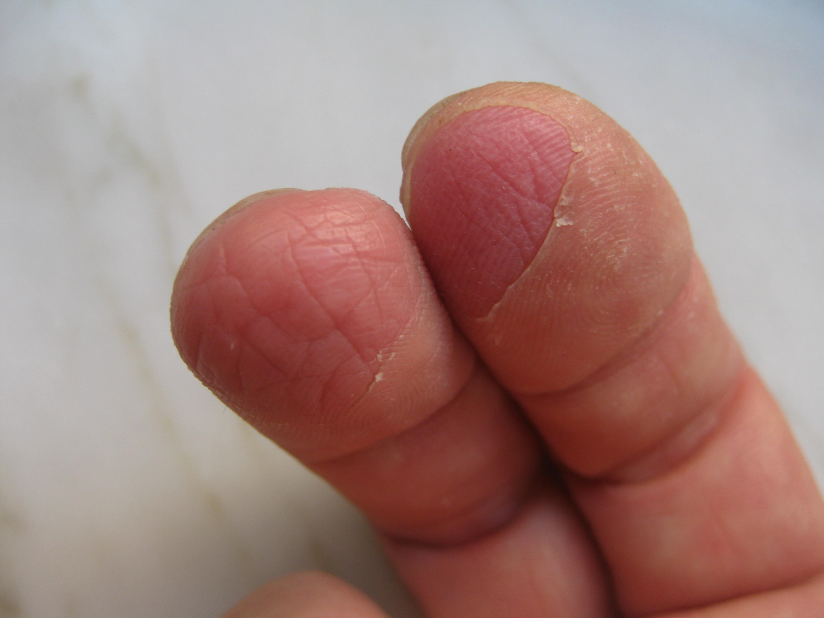 Questi sono i risultati che si sono manifestati sui miei polpastrelli alcuni giorni dopo, per aver maneggiato "troppe operaie” senza precauzioni... la pelle si è staccata tutta in un colpo, manifestando poche ore prima un effetto "bolla” quasi come una vescica, indolore, ma con una sensazione di ipersensibilità per la pelle nuova sotto.