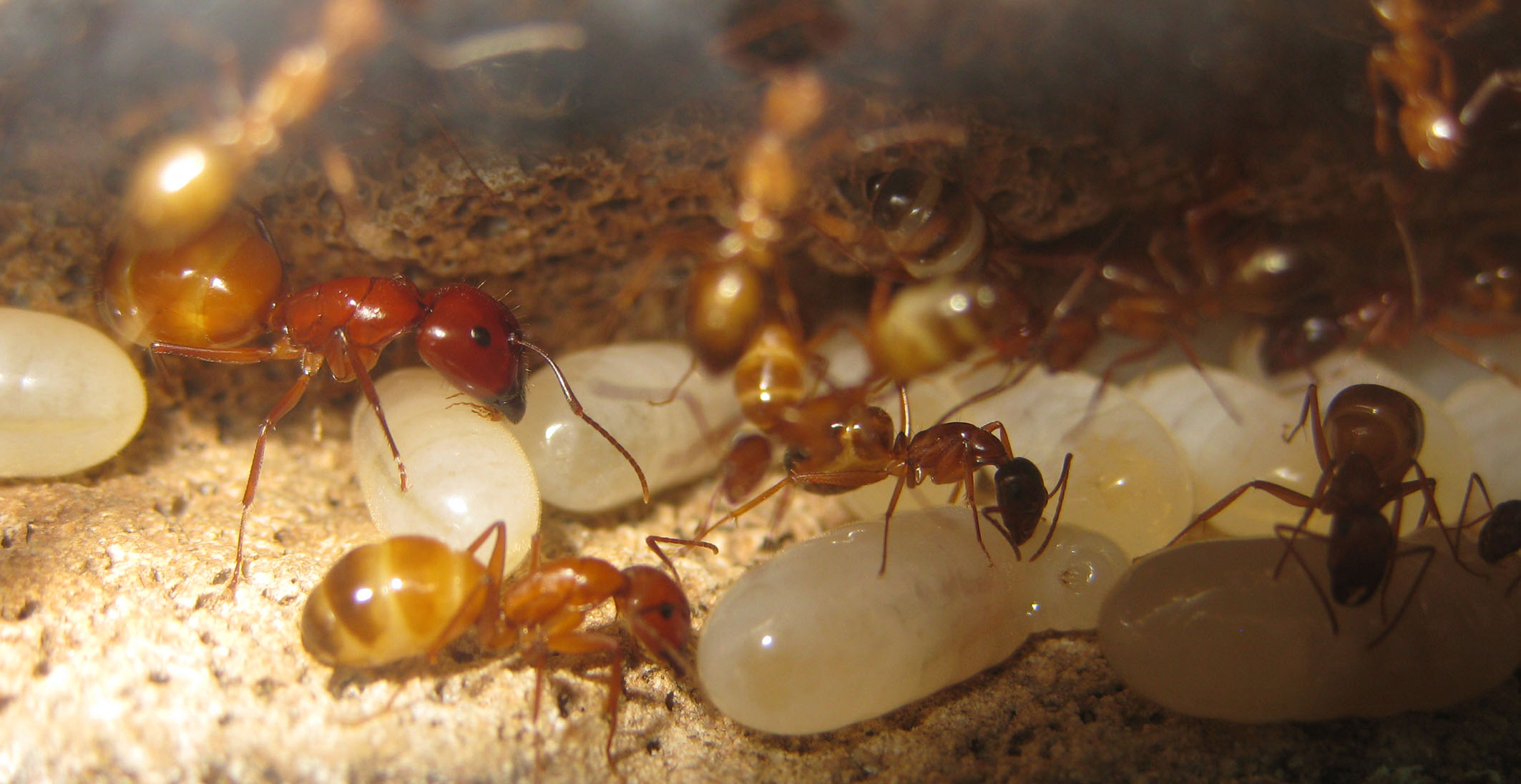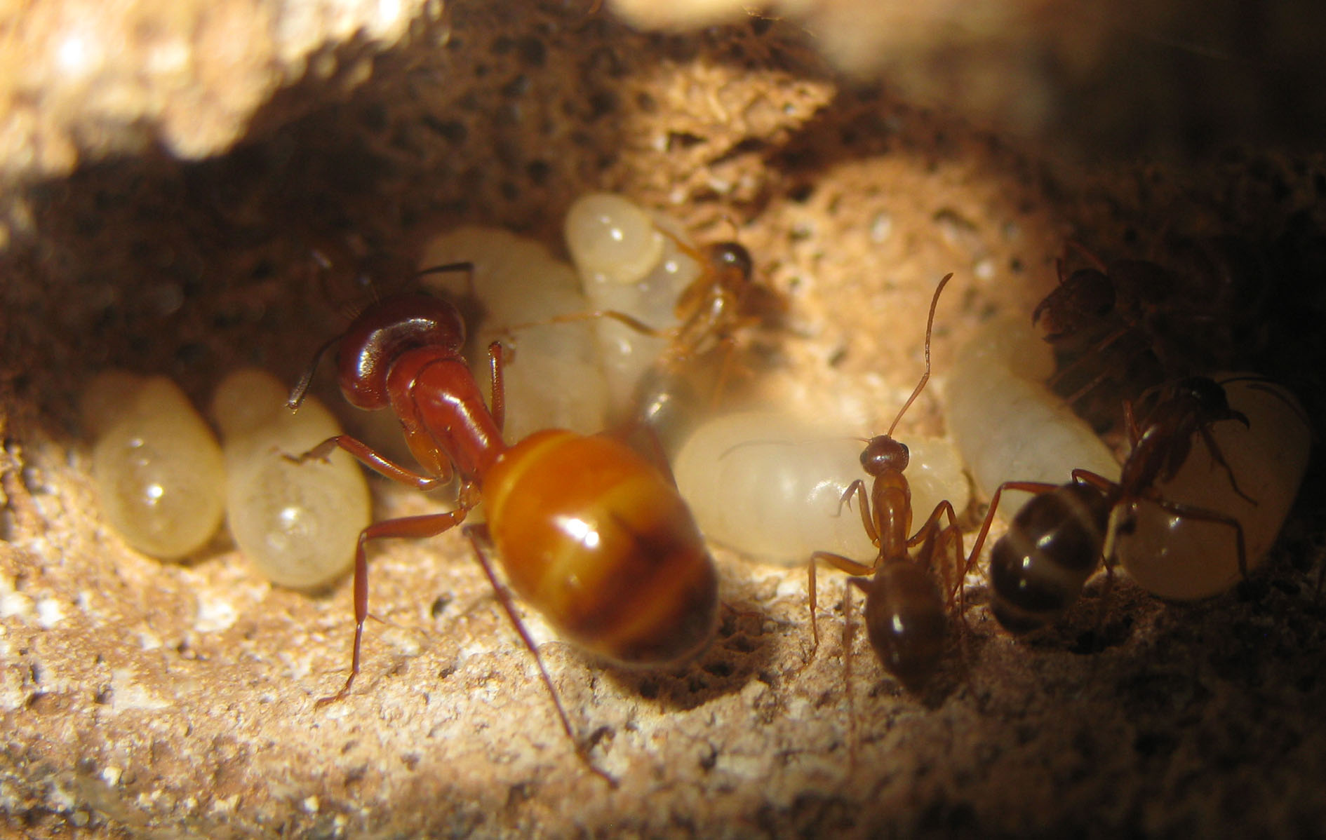 Infatti già due persone, un siciliano e un mirmecologo, hanno ammesso di non aver mai visto degli adulti della specie di questi colori. Ovvio, visto che non escono mai dal nido in questa fase! Possiamo vederli solo noi che li alleviamo, o forse scoperchiando un sasso che li ospiti, altrimenti stanno sempre nelle stanze più riparate!