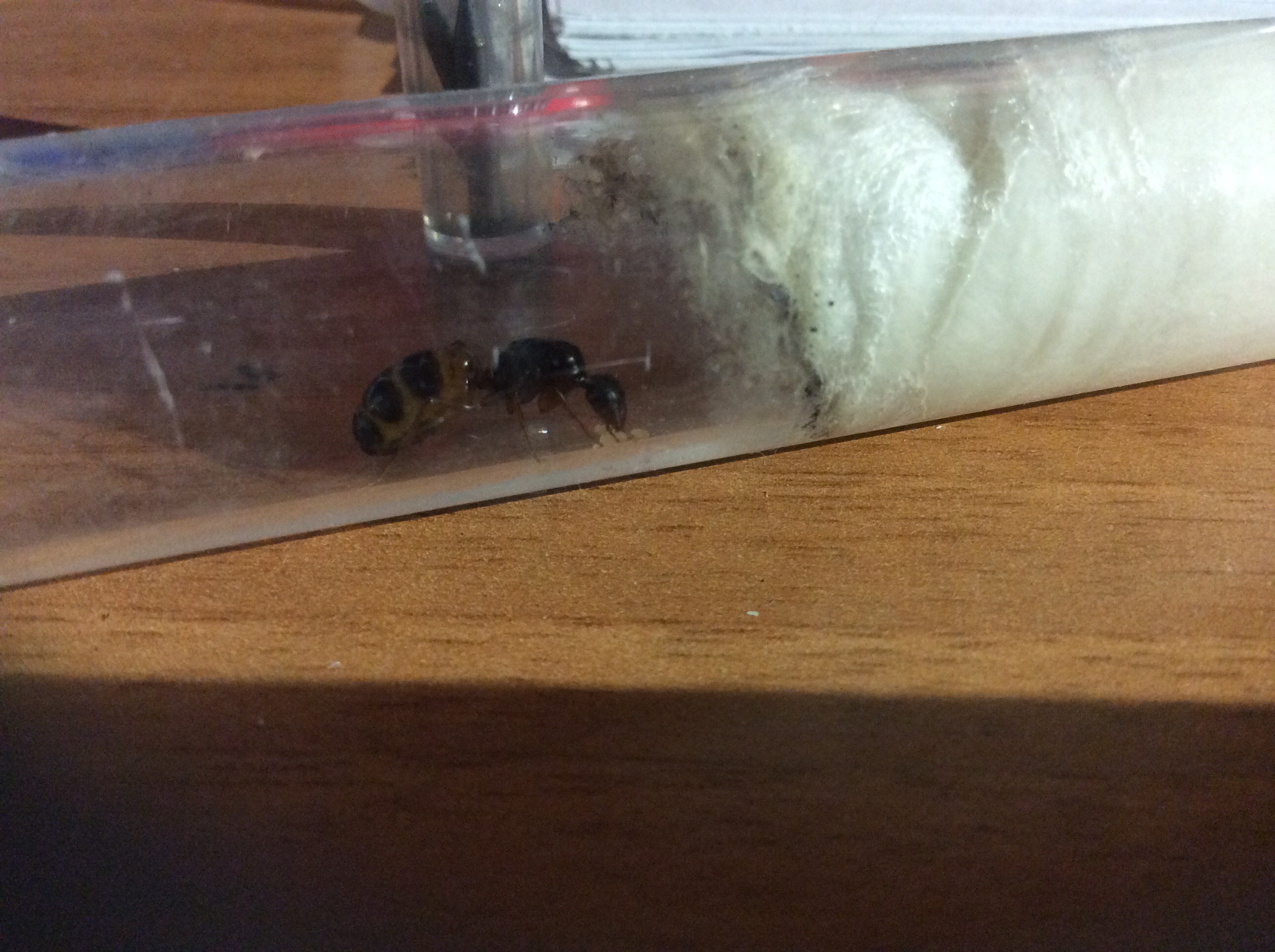 Salve a tutti! Ho trovato una regina il 5 ottobre provincia di Catania e pubblicando qualche foto sul sito mi hanno informato che si tratta di una Camponotus nylanderi. Appena a inizio Maggio ha iniziato a deporre un paio di uova fino ad arrivare a 6 (non so se ancora ne deporrà). La sto tenendo al buio in un armadio con una temperatura di circa 23 gradi.