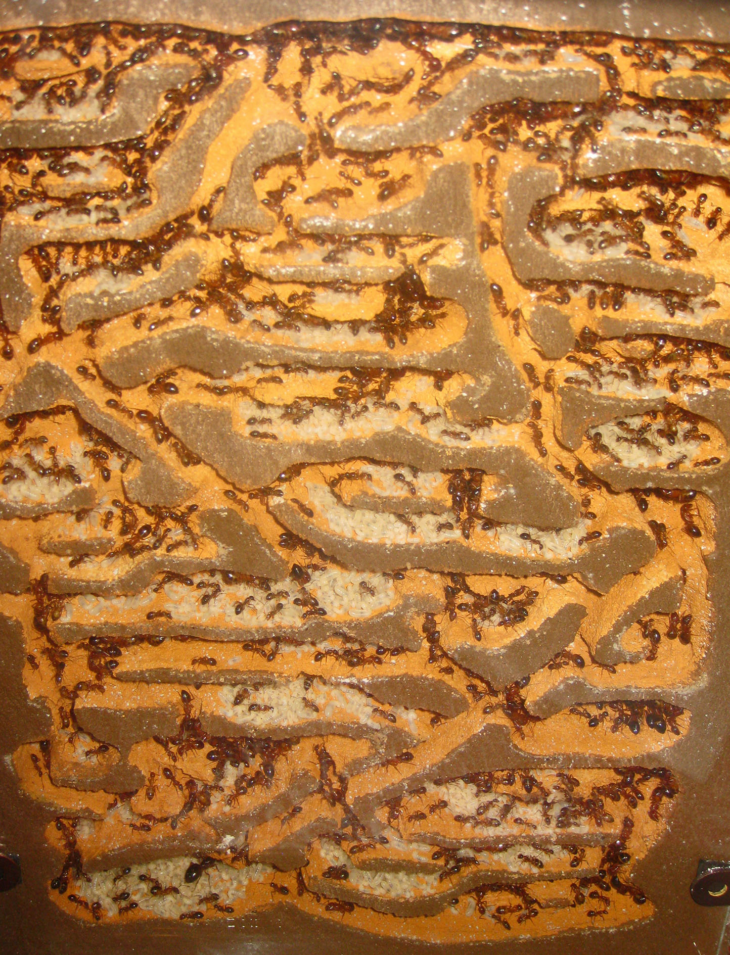 Anche sviluppare il formicaio su due facciate ormai non è una soluzione definitiva, guardate la colonia di Messor capitatus... non ci stanno già più ugualmente!