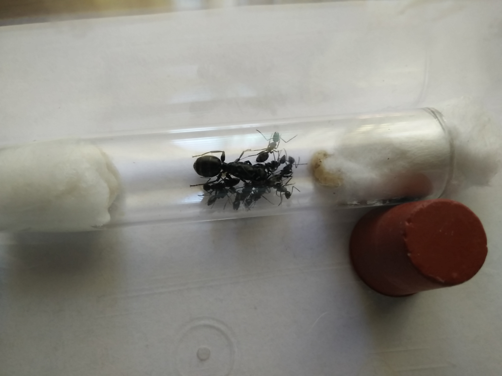 Ho trovato il 24/06/16 due formiche regine di Camponotus vagus e le ho messe nella provetta con l'acqua come descritto. Le regine si sono subito ambientate e hanno cominciato a deporre. Purtroppo una delle due è morta senza nessun motivo apparente, mentre l'altra ha deposto ben 9 uova che sono arrivate tutte all'individuo adulto senza problemi.