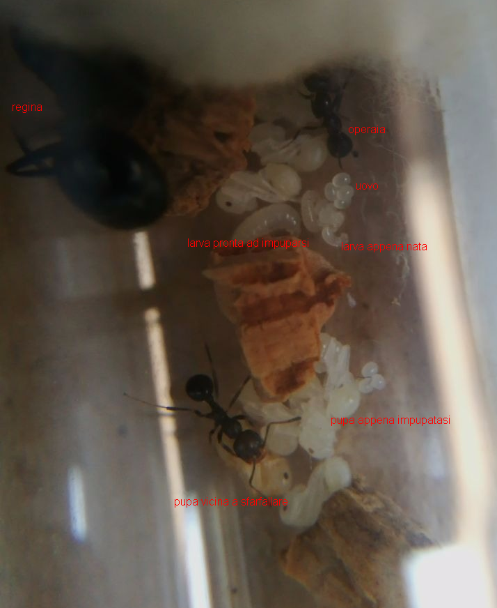 Le mie regine (tre belle Camponotus lateralis ) hanno deposto una decina di giorni fa..ci siamo! Ma ho una domanda da inesperta: da cosa mi accorgerò della schiusa? Nelle foto che ho visto prevalentemente c'erano larve belle ciccione..lo chiedo perché fatico anche solo a vedere (non dico contare!) le uova e mi sento veramente imbranata!!