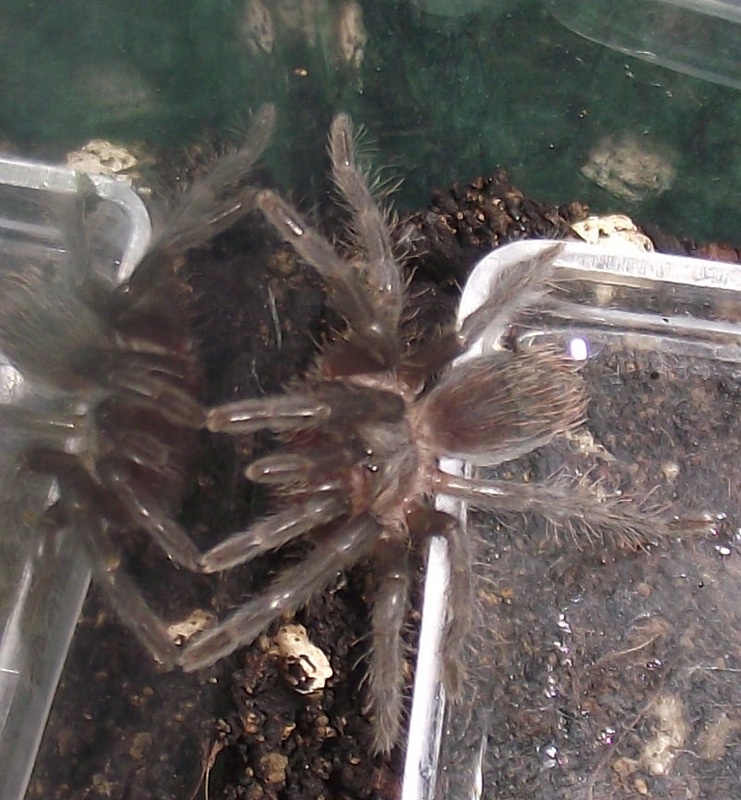 Le due specie dovrebbero con le zampe superare i 10 cm da adulti e se femmine vivere più di 15 anni, se maschi molto molto meno...maturano e raggiungono le dimensioni da adulto in vari anni...ci vuole pazienza.