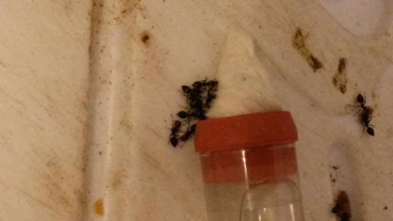 Invece, ieri sera ho scoperto che i due furbacchioni usano invece a loro volta le formiche come pasto, avevano catturato un paio di operaie, grandi più di loro e le stavano allegramente sgranocchiando!!