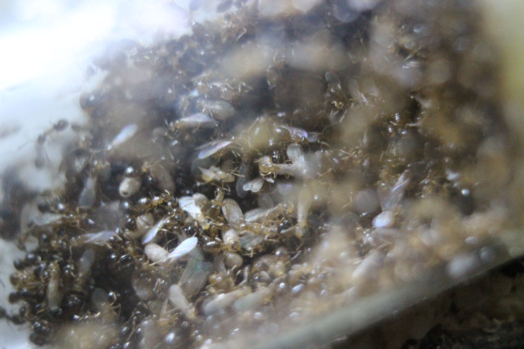Purtroppo le regine, alcune dealatesi in cattività, non avendo la possibilità di inserirle in formicai di Plagiolepis pygmaea morirono tutte.
