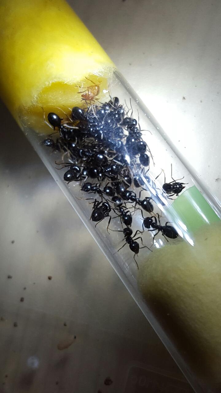 Oggi ne ho trovate 2 per caso! Mamma mia adesso ho scoperto che operaie fossero quelle nere pece lucide! L'anno scorso ne avevo parlato in un post, fanno file interminabili e sono un disastro! Ho tenuto la regina dealata e ho preso qualche operaia li intorno! In più ho notato che c era qualche operaie di Lasius flavus, immagino la colonia vittima...ho preso su anche alcune di loro e ho fregato una trentina di bozzoli a un super formicaio di Lasius che non ho saputo identificare! lol vediamo che succede!