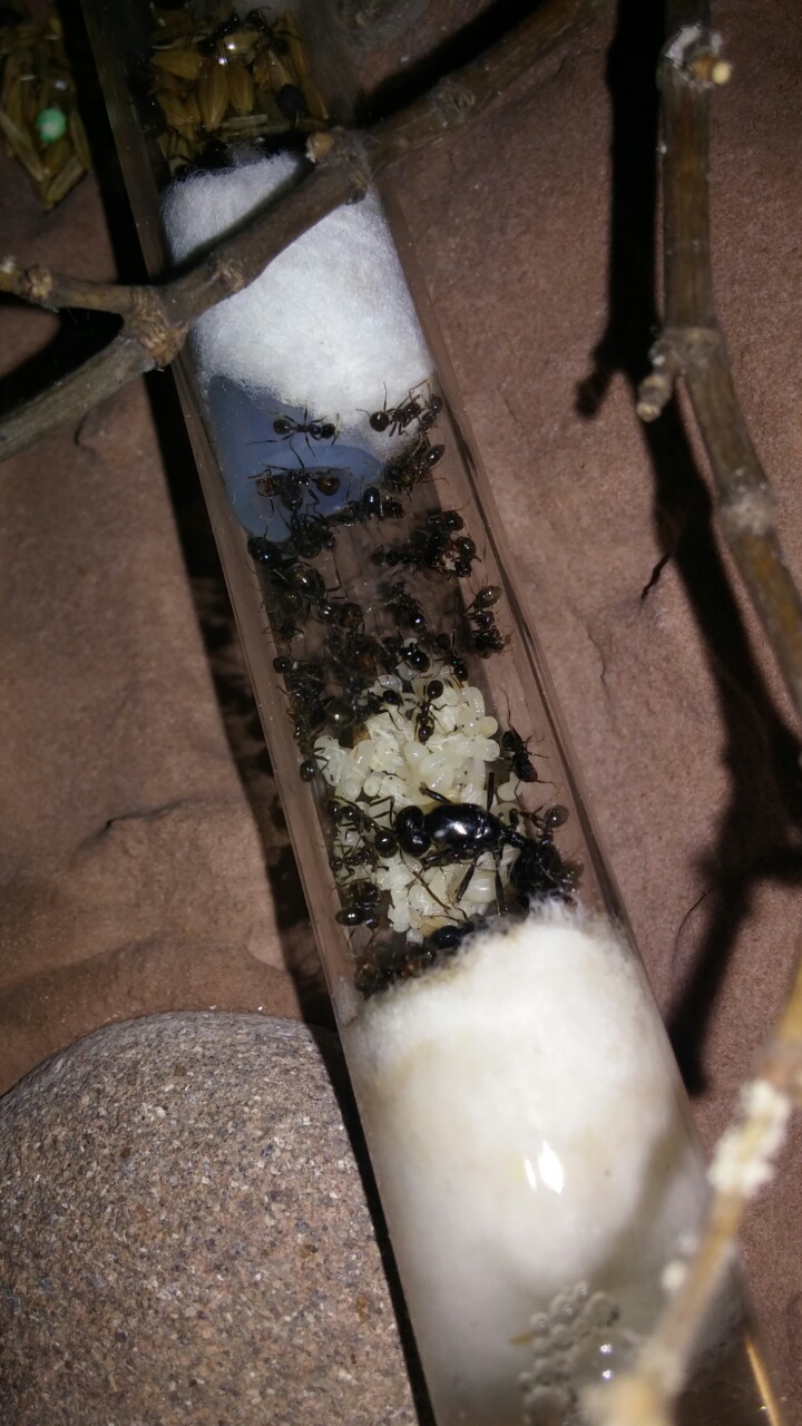 Non convinto ancora dell precedente formicaio ho spostato la provetta in un formicaio nuovo (neppure questo mi convince .-.) comunque dall'ultimo aggiornamento il boom demografico è stato abbastanza evidente!