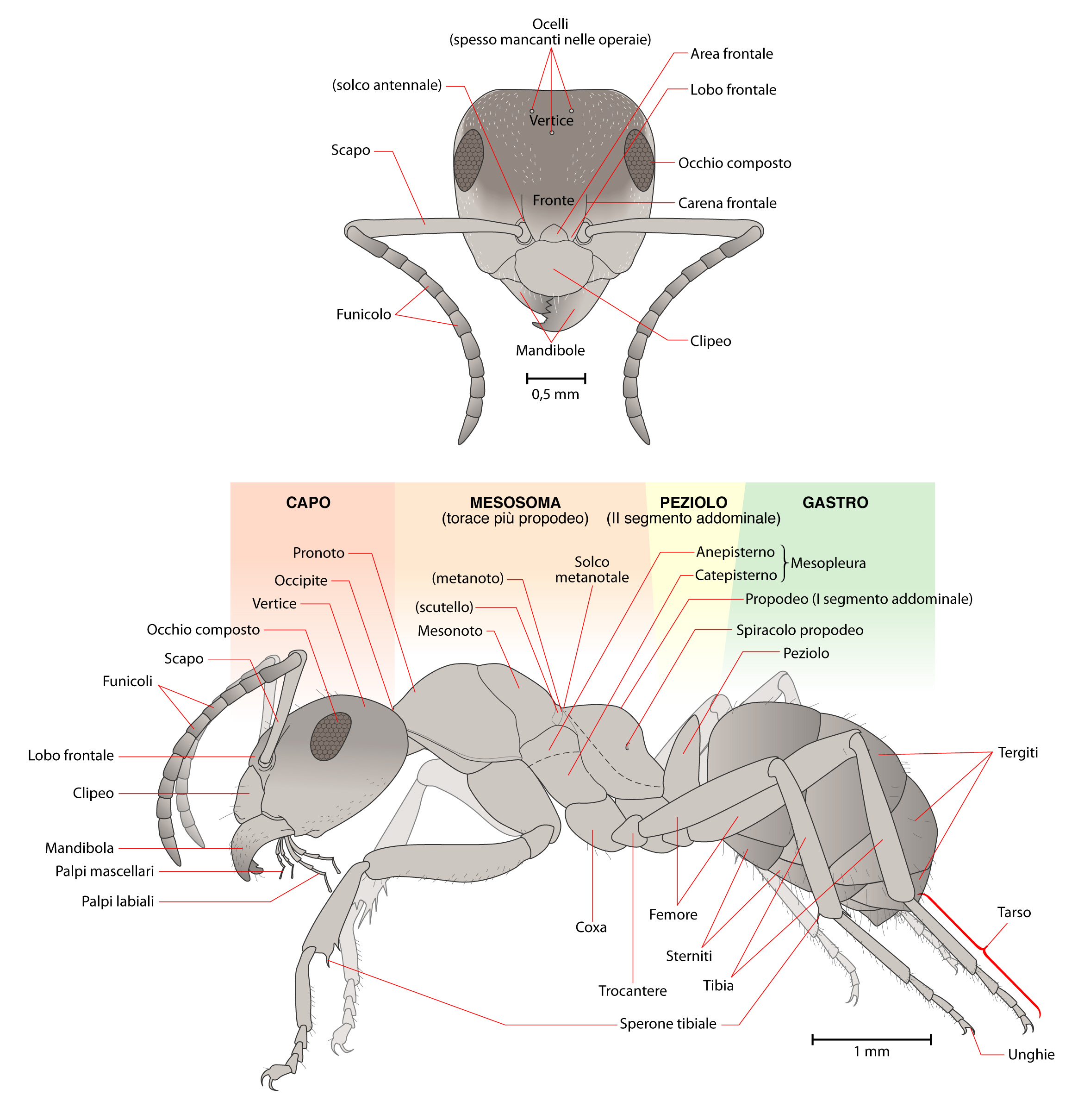 Aggiungo che il Prof. Ill. è molto fiscale in questioni anatomiche, dato che è un po' il suo mestiere, detto questo, usiamo la suddetta base per l'anatomia "formichesca”