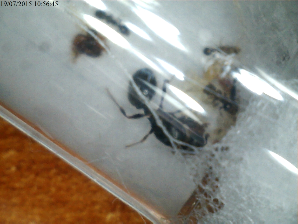 Oggi sono andato a vedere le due colonie: la prima, ha ben 8 operaie mentre la seconda delle pupe che stanno per diventare pupe.Ecco qualche foto: