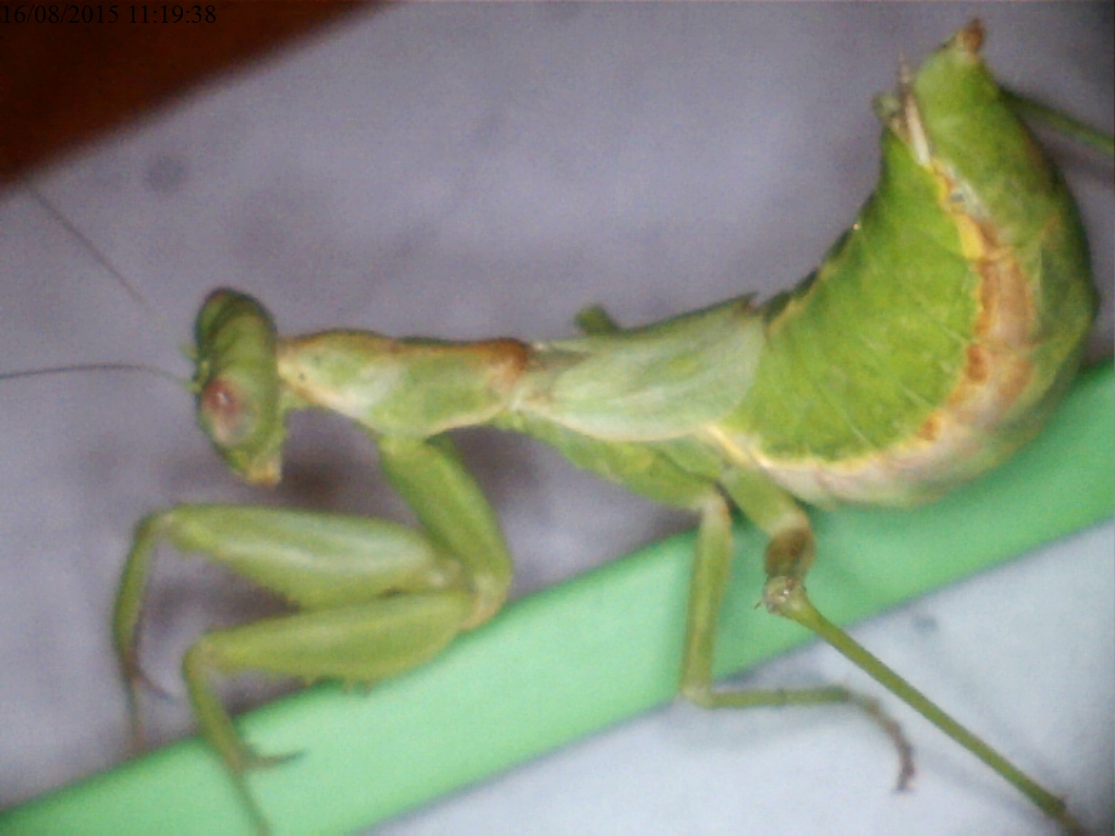 ma era enorme! A primo impatto lo avevo scambiato per una giovane mantide religiosa!L'ho lasciato alla libertà, ma se avessi trovato anche una femmina sarebbero qui a casa in una teca