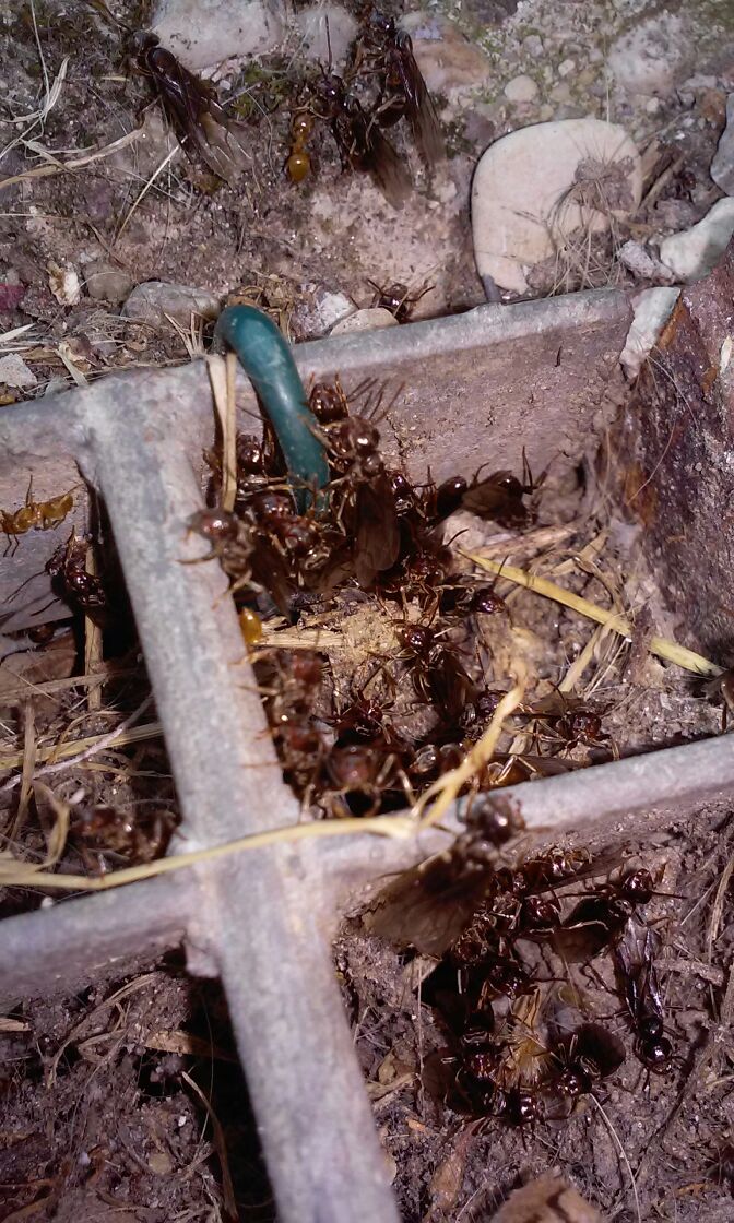 Ho anche pensato possano essere state fecondate nel pozzetto di cemento dentro il quale hanno il formicaio,sopra c é dello spazio ,circa 40cm e poi il buco da dove escono.