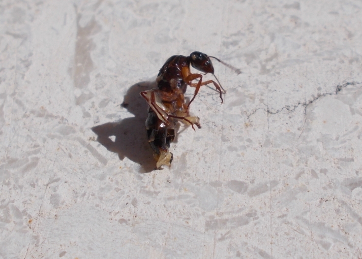 Ciao a tutti! La formica in questione è stata avvistata moribonda con l'addome schiacciato da un mio parente sotto una poltrona a sacco. So che non è utile nè congruo mostrare questo genere di foto, ma vista la dimensione insolita ho ritenuto opportuno farle e chiedere lumi a voi. Potreste dirmi di che specie si tratta? Grazie mille e spero che non sia il primo e ultimo post in questo meraviglioso forum