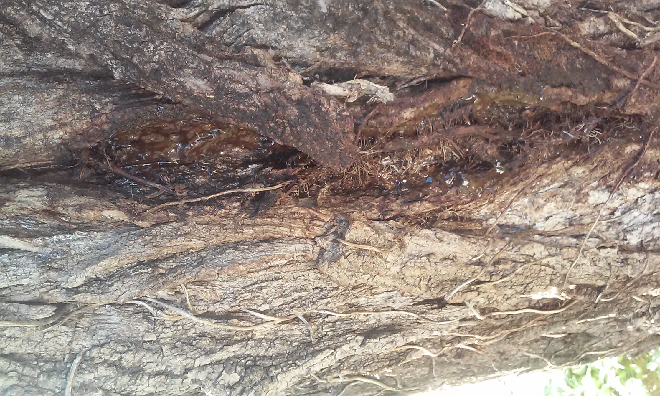 Questa nella foto é una "lacrima " di linfa che esce da un pioppo nel cortile della mia ditta,é lunga 150 cm e scorre ininterrottamente da metá agosto.