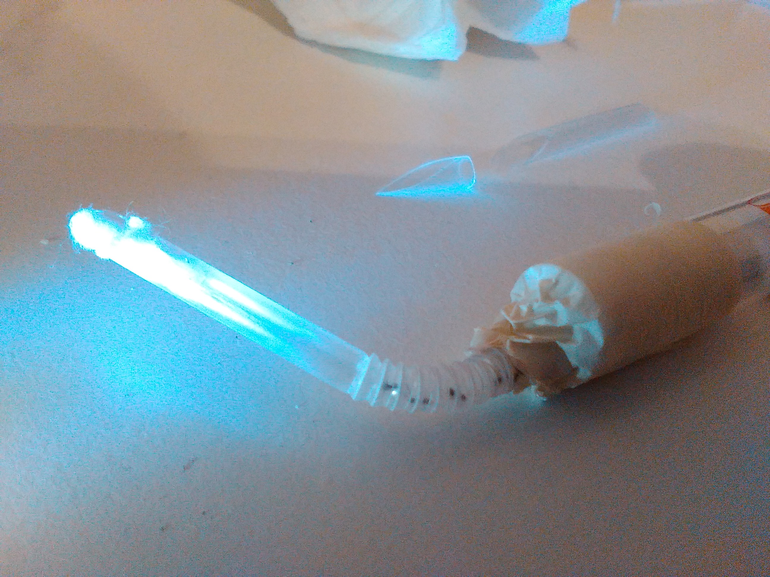 Ho collegato tramite cannuccia una seconda provetta completamente all'ombra, quindi puntato una luce sulla vecchia.