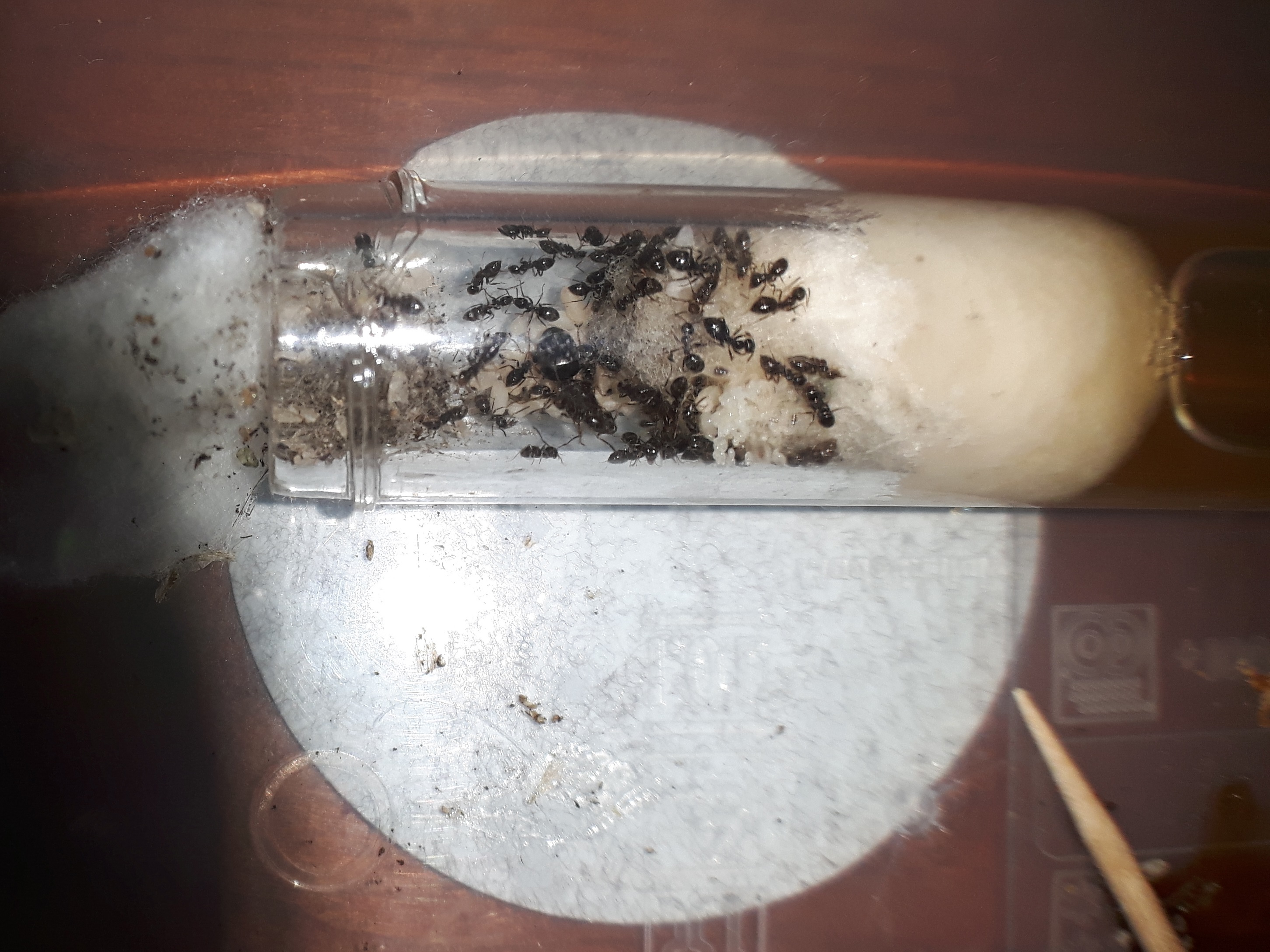 era ora di cambiare provetta, la muffa nera copriva completamente la vista delle formiche e l'acqua era quasi esaurita.