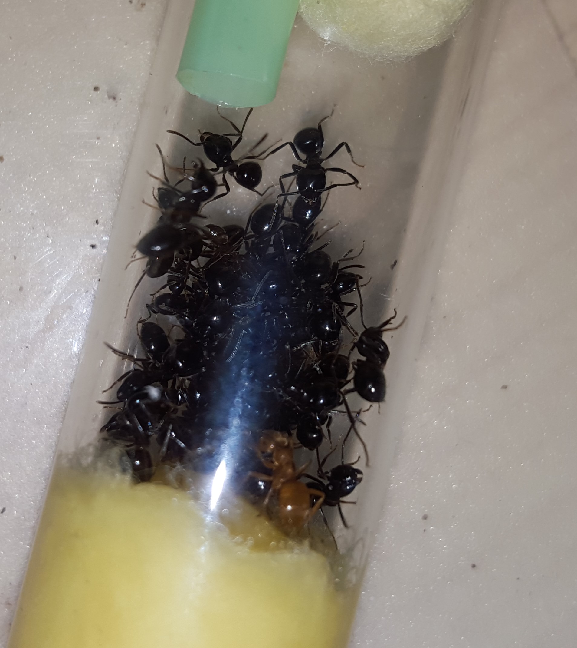 ho trovato una foto dell'anno scorso! avevo pensato di tentare una fondazione ma poi rendendomi conto che non mi interessava allevarla come specie l'ho liberata! ora che ci penso la prima regina che ho trovato (con lo scopo di trovare una regina) è stata proprio una Lasius fuliginosus