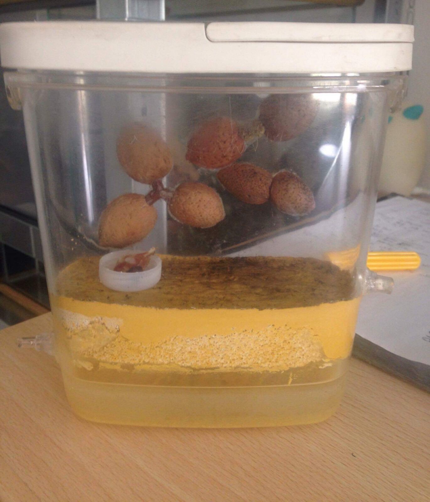 la muffa sulla base non è di nessun problema per le formiche che vivono nelle mezze mandorle, ma si può rimuovere con un minimo di frizione meccanica con un po di cotone bagnato o altro